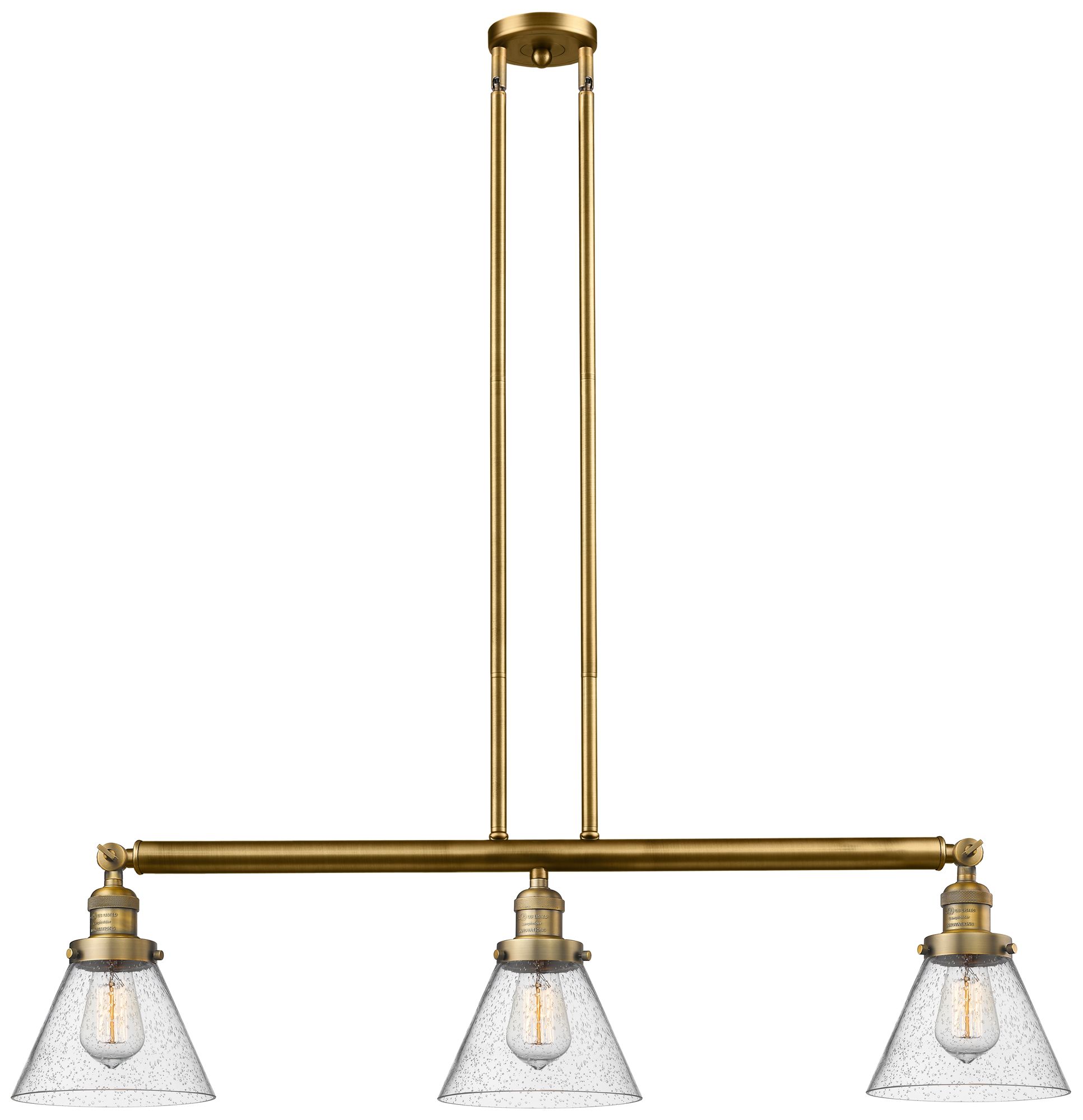 Cone 40.25"W 3 Light Brushed Brass Stem Hung Island Light w/ Seedy Sha