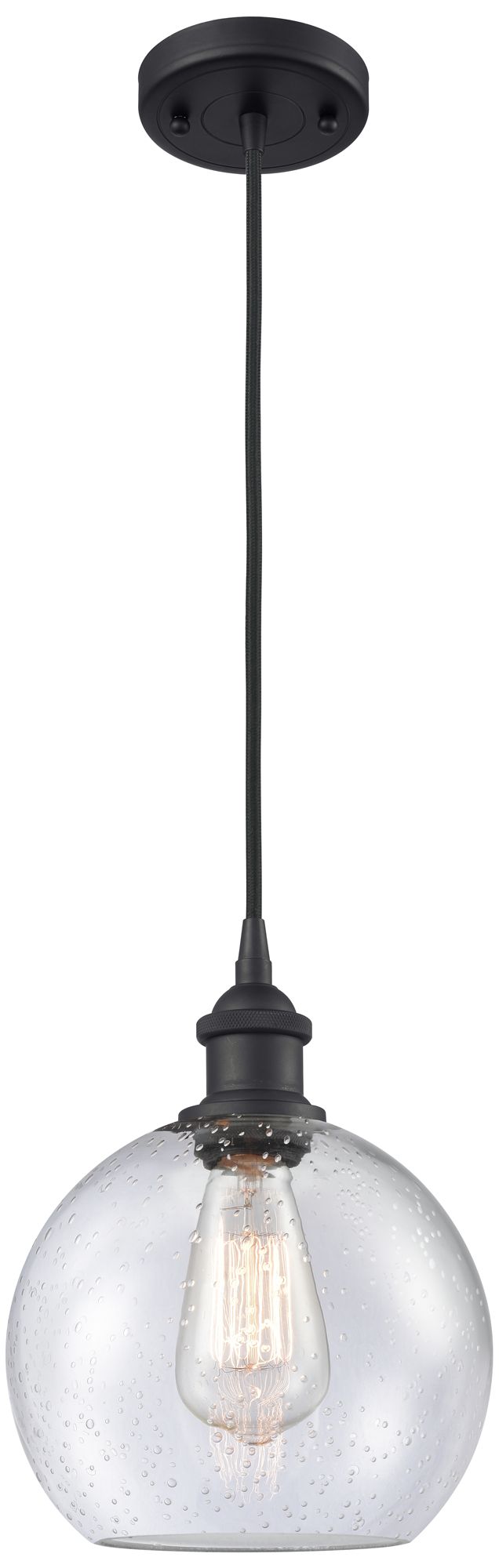 Ballston Athens 8" LED Mini Pendant - Matte Black - Seedy Shade