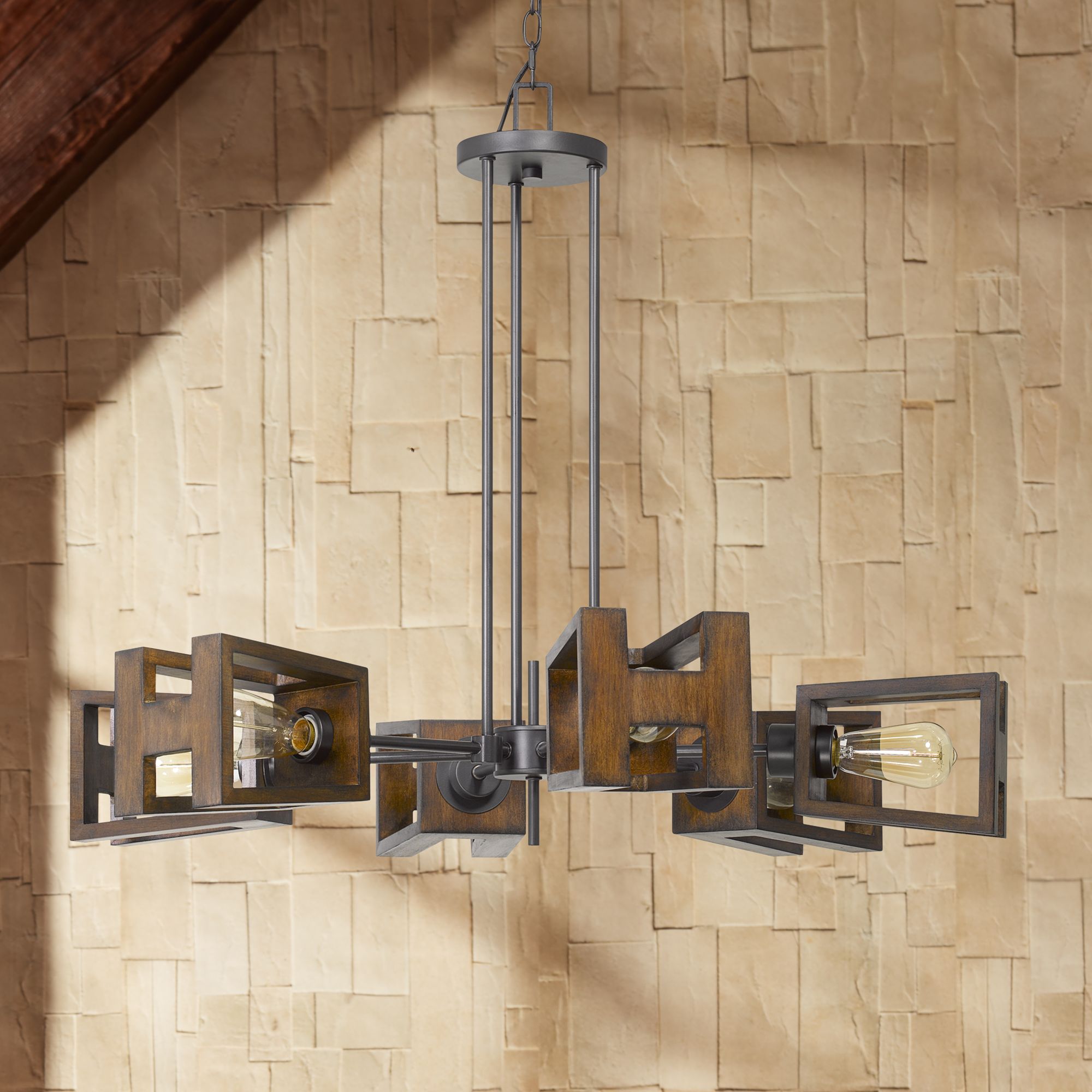 Biel 35" Wide Iron and Wood 6-Light Sputnik Chandelier