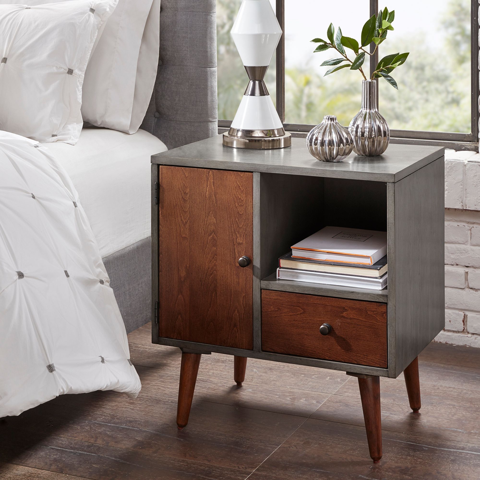 INK + IVY Stinson 24" Wide Mid-Century Wood Storage Nightstand
