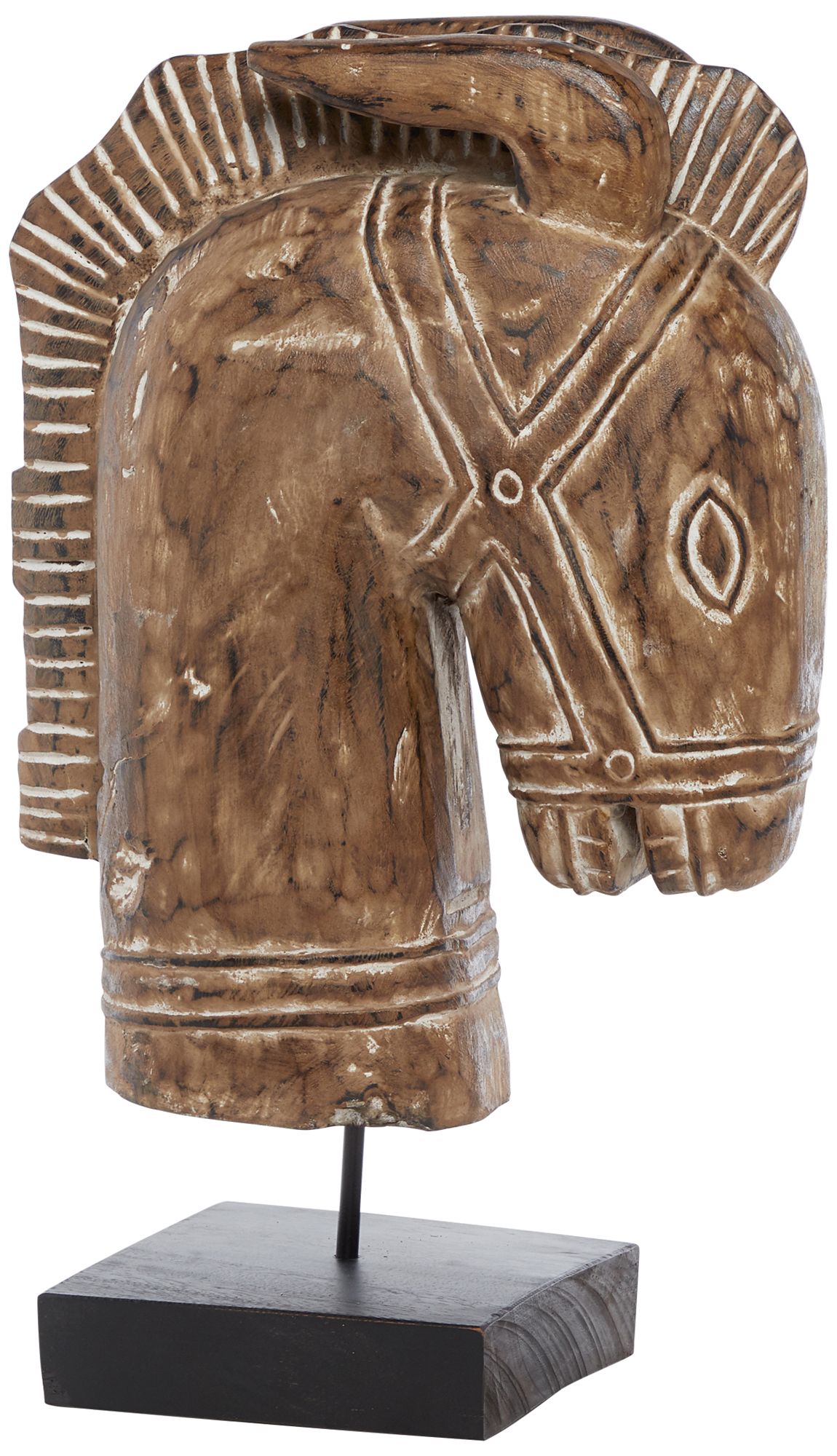 Brown Hand-Carved Suar Wood 22" High Horse Sculpture