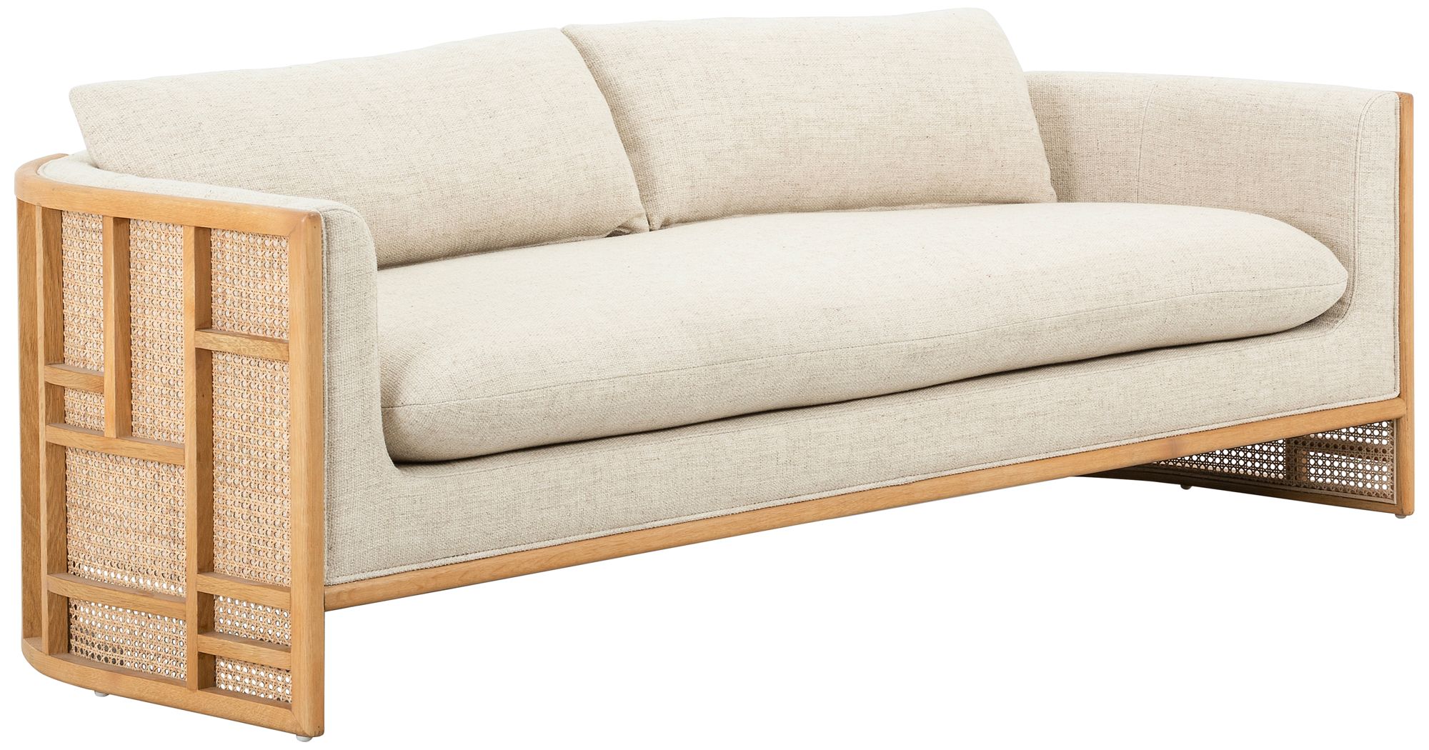 June 81" Wide Modern Cream Oak and Rattan Sofa
