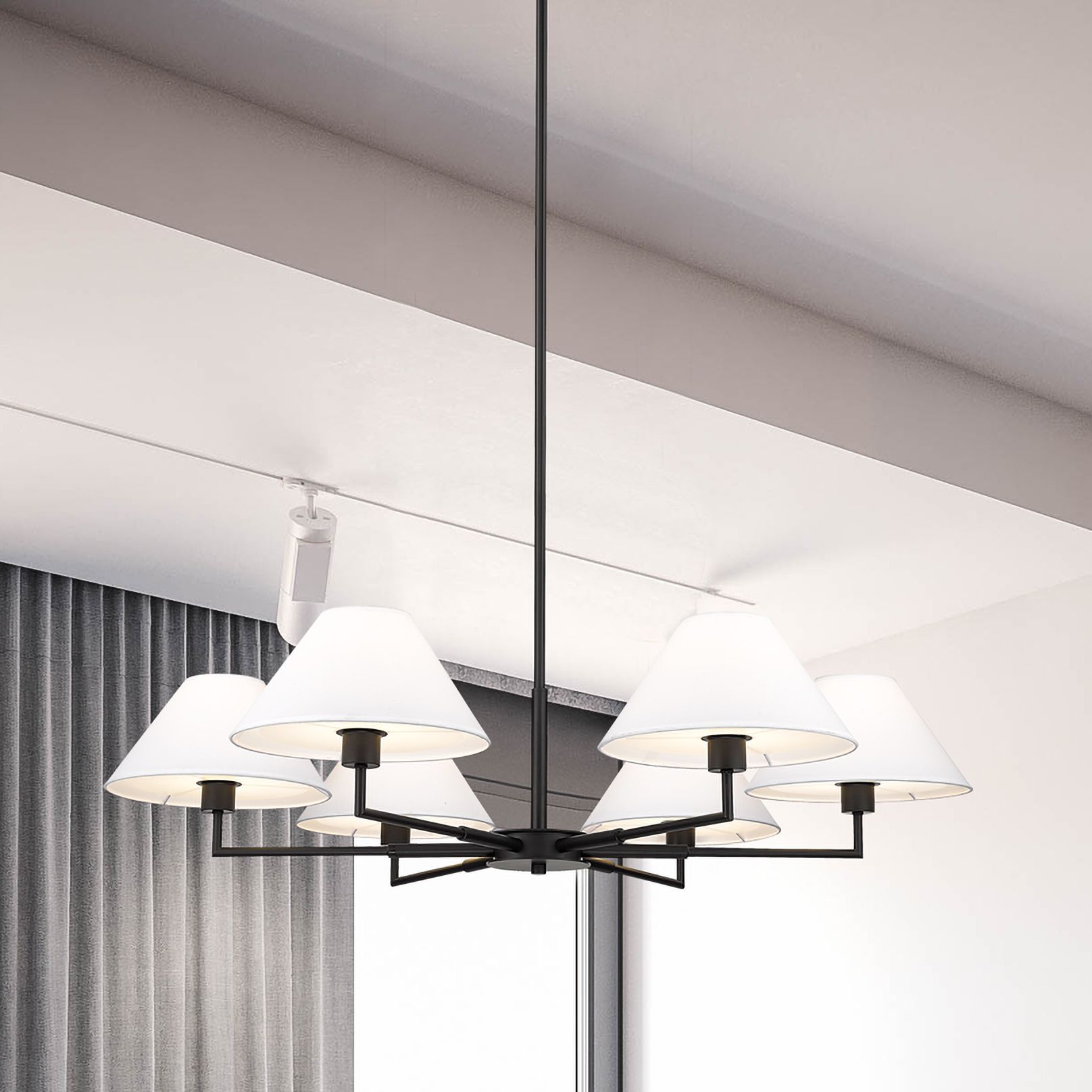 Leila 44" Wide Matte Black 6-Light Chandelier w/ Linen Shade