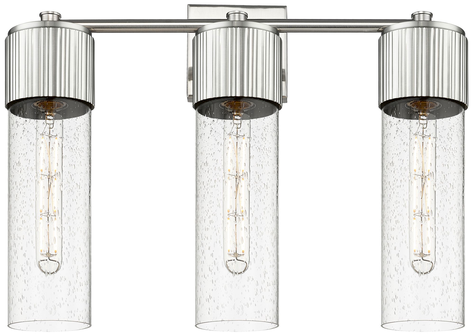 Bolivar 20.5" Wide 3 Light Satin Nickel Bath Light With Seedy Glass Sh
