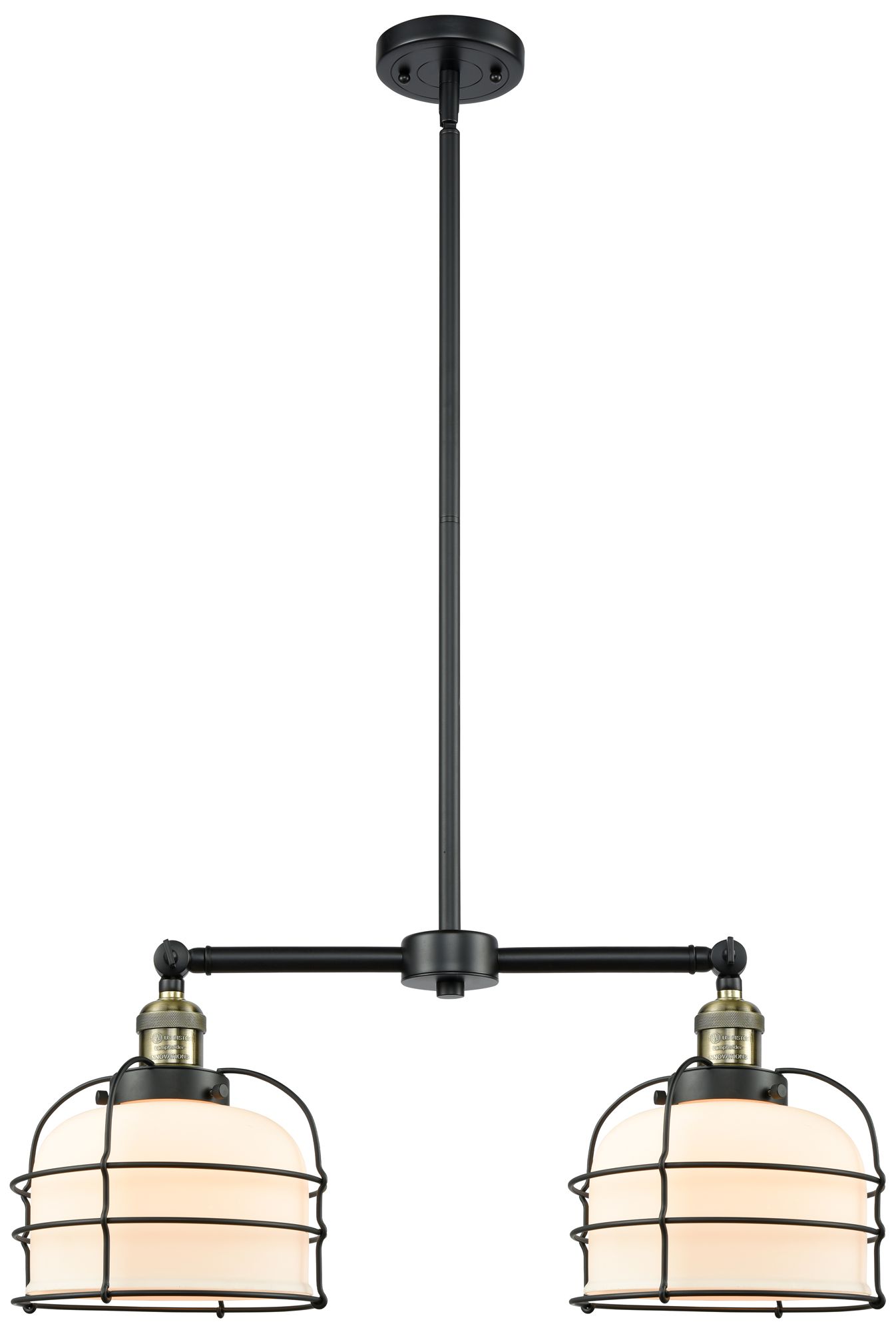 Franklin Bell Cage 24" 2-Light Black Brass Island Light w/ White Shade