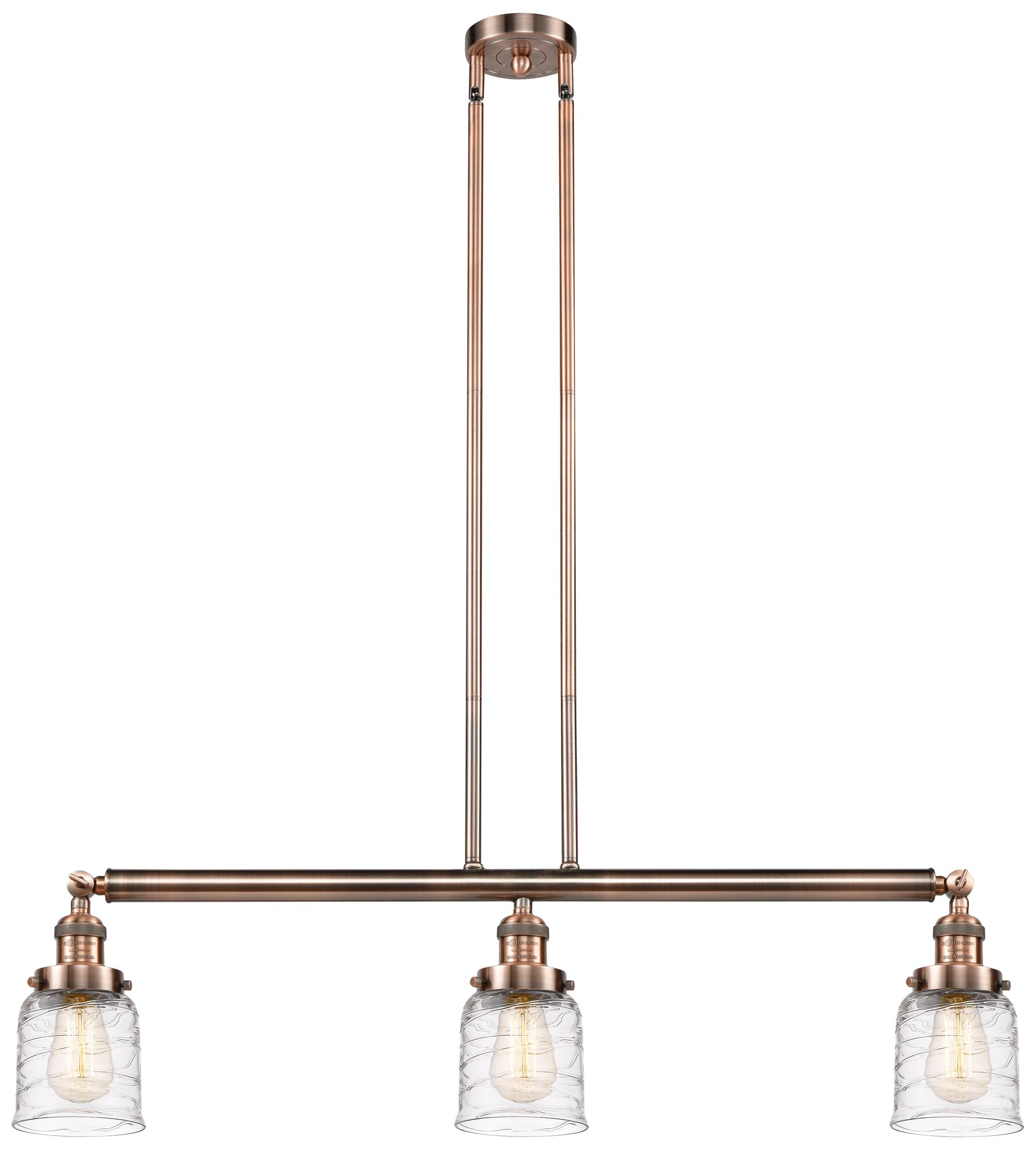 Bell 3 Light 38" LED Island Light - Antique Copper - Deco Swirl Shade
