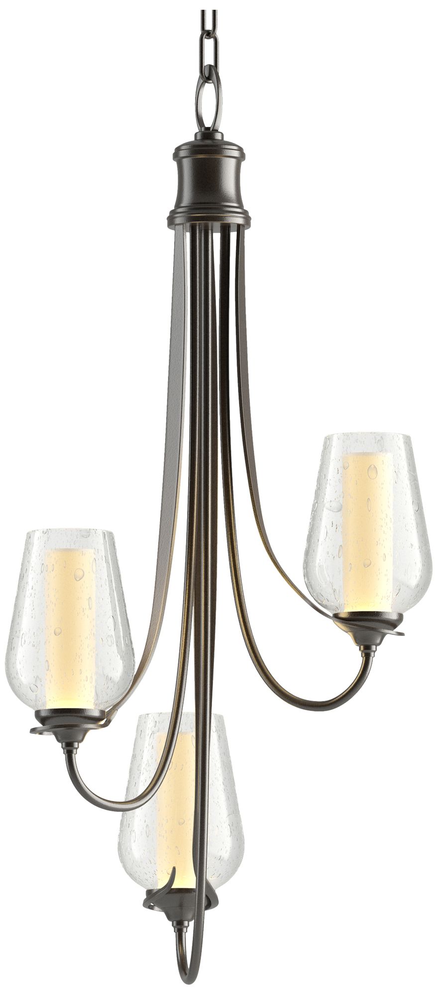 Flora 15.8"W 3 Arm Oil Rubbed Bronze Chandelier With Opal and Seeded G