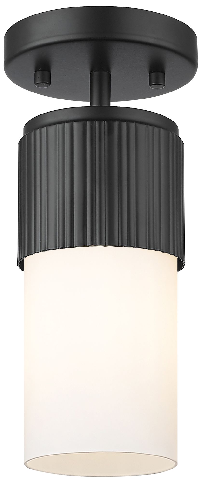 Bolivar 4" Wide Matte Black Flush Mount With Matte White Glass Shade