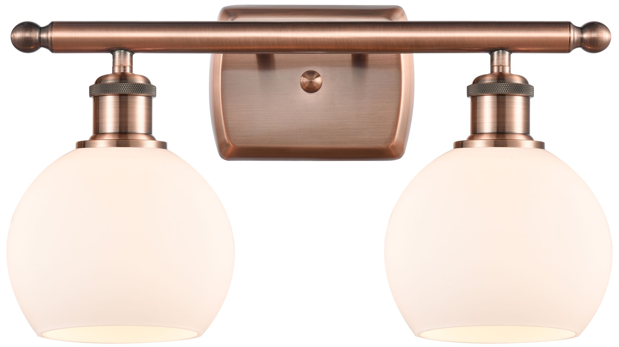 Athens 2 Light 16" Bath Light - Antique Copper - Matte White Shade