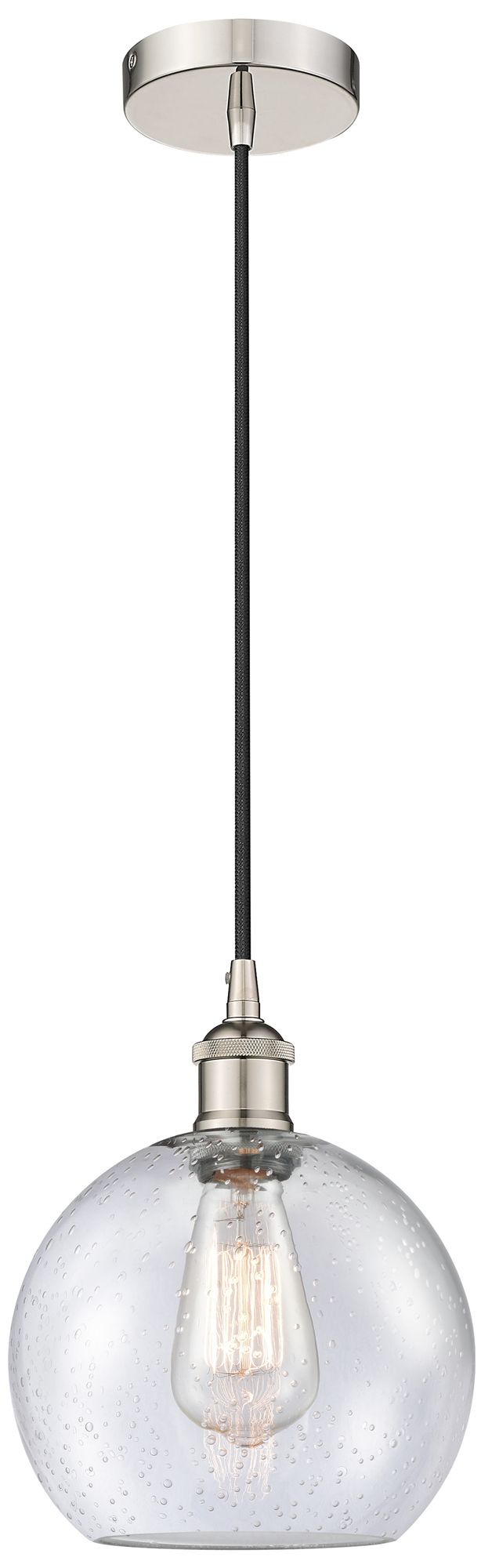 Edison Athens 8" Polished Nickel Cord Hung Mini Pendant w/ Seedy Shade