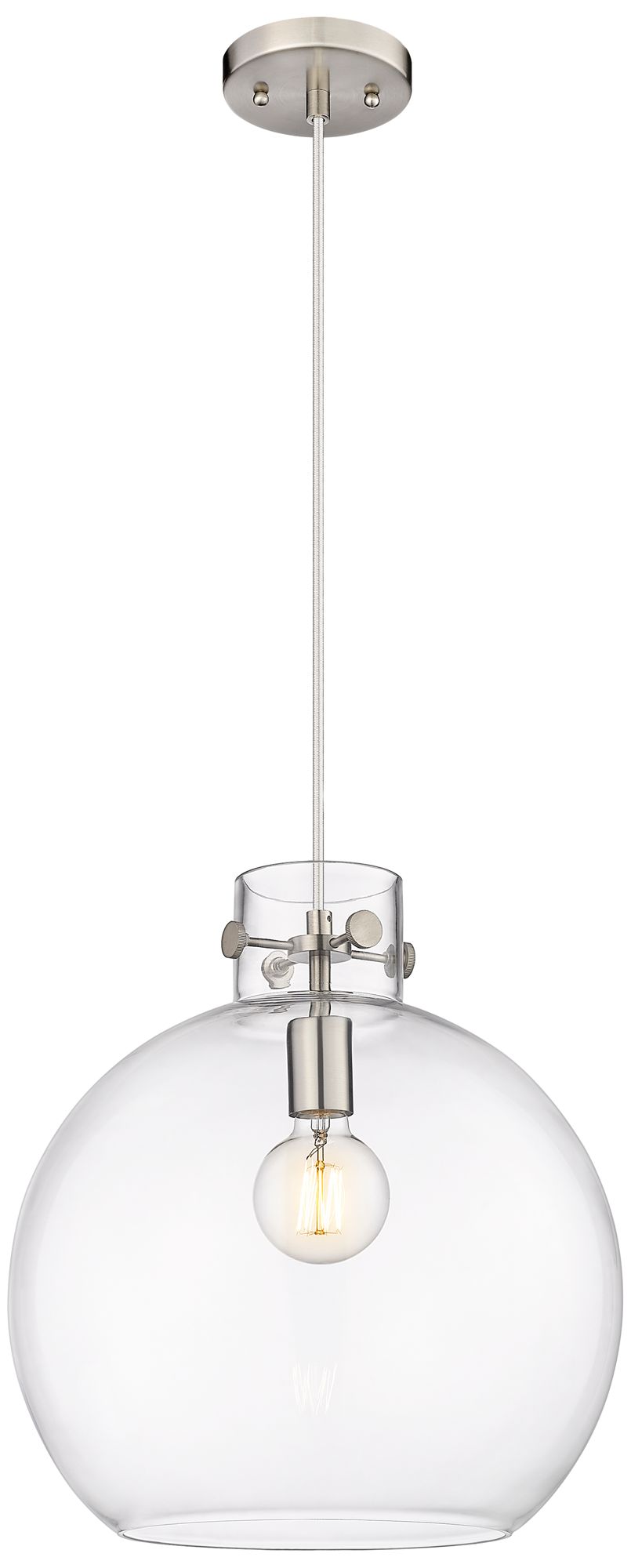 Newton Sphere 14" Wide Cord Hung Satin Nickel Pendant With Clear Shade