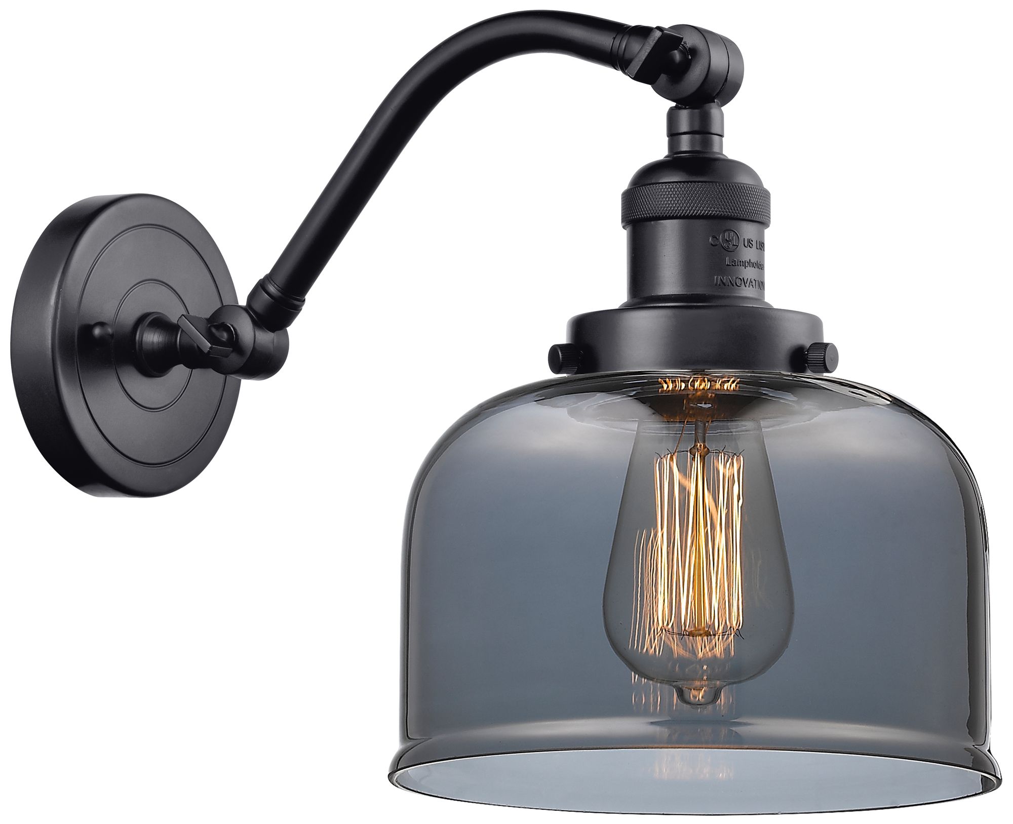 Bell 8" Matte Black Sconce w/ Plated Smoke Shade