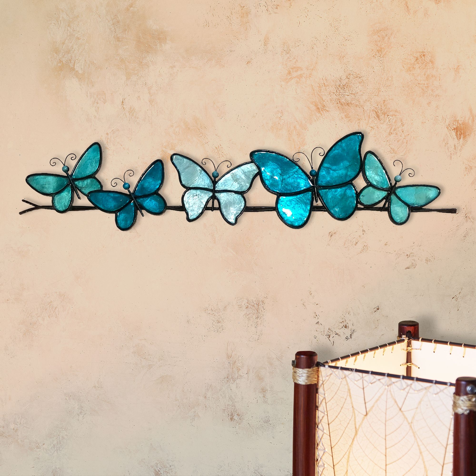 Butterflies On A Wire 28"W Sea Blue Capiz Shell Wall Decor