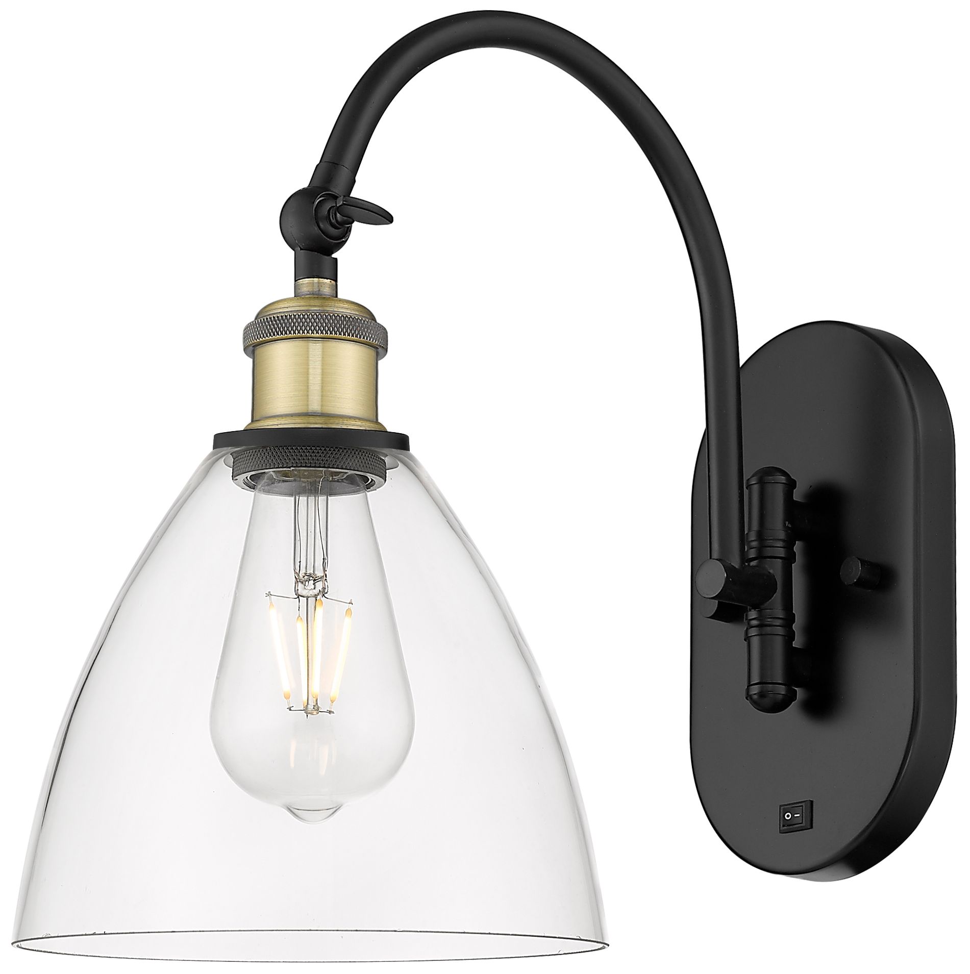 Ballston Bristol Glass 8" LED Sconce - Black Brass Finish - Clear Shad