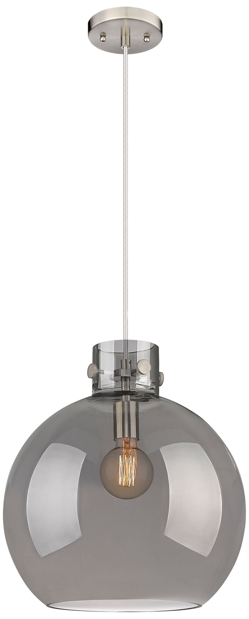 Newton Sphere 14" Wide Cord Hung Satin Nickel Pendant With Smoke Shade