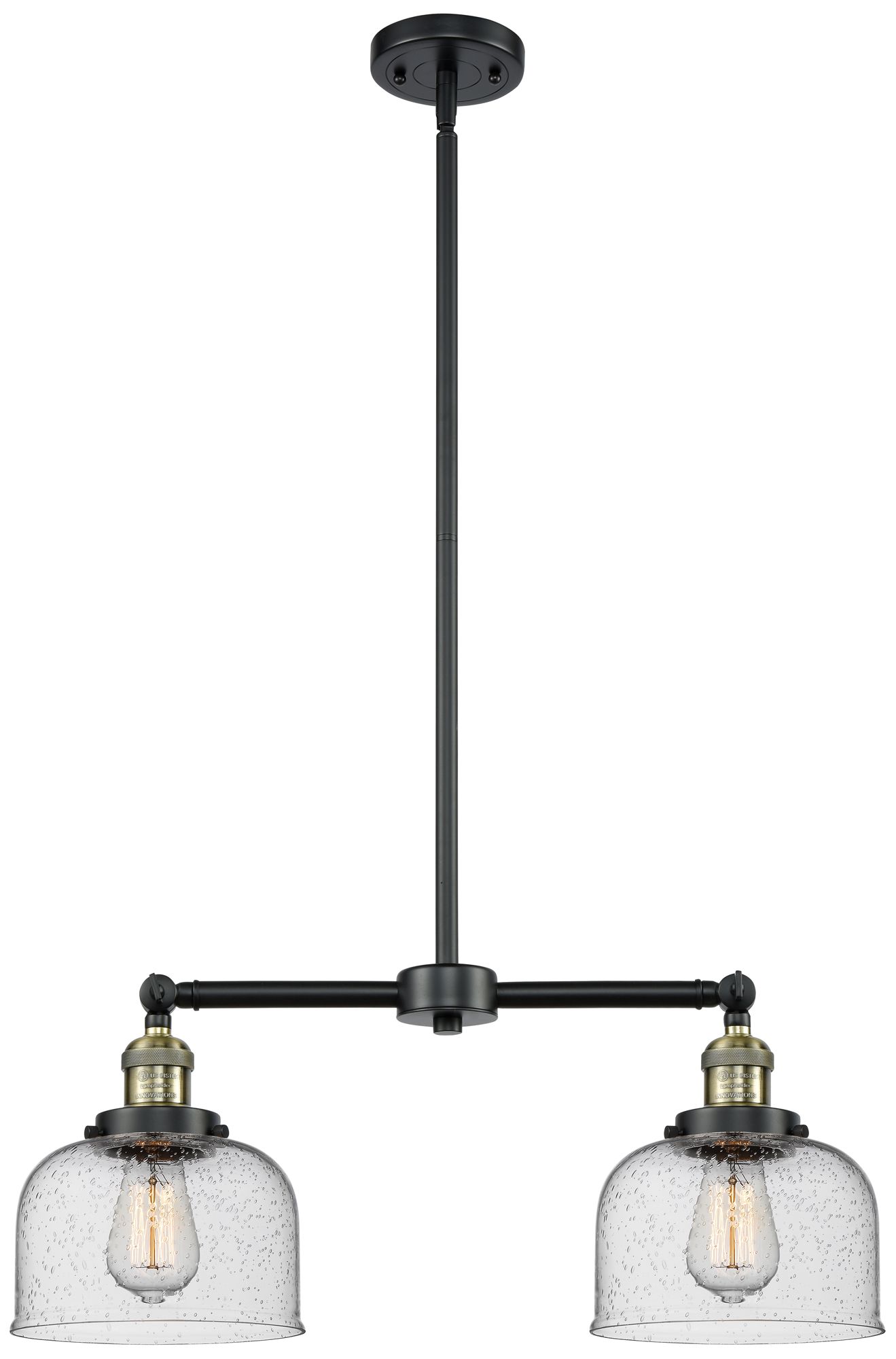 Large Bell 21" 2-Light Black Antique Brass Island Light w/ Seedy Shade