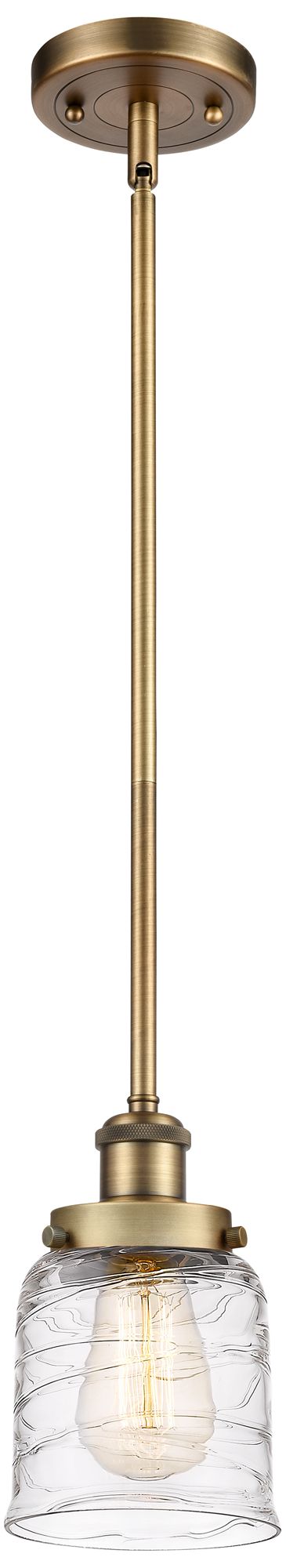 Ballston Urban Bell 5" Brushed Brass Stemmed Mini Pendant w/ Deco Shad