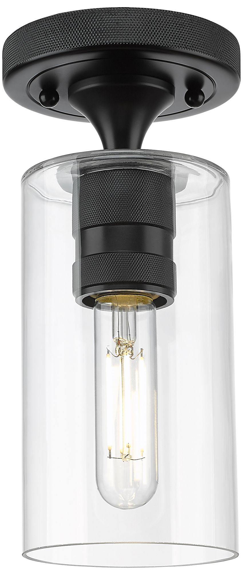 Crown Point 4" Wide Matte Black Flush Mount with Clear Shade