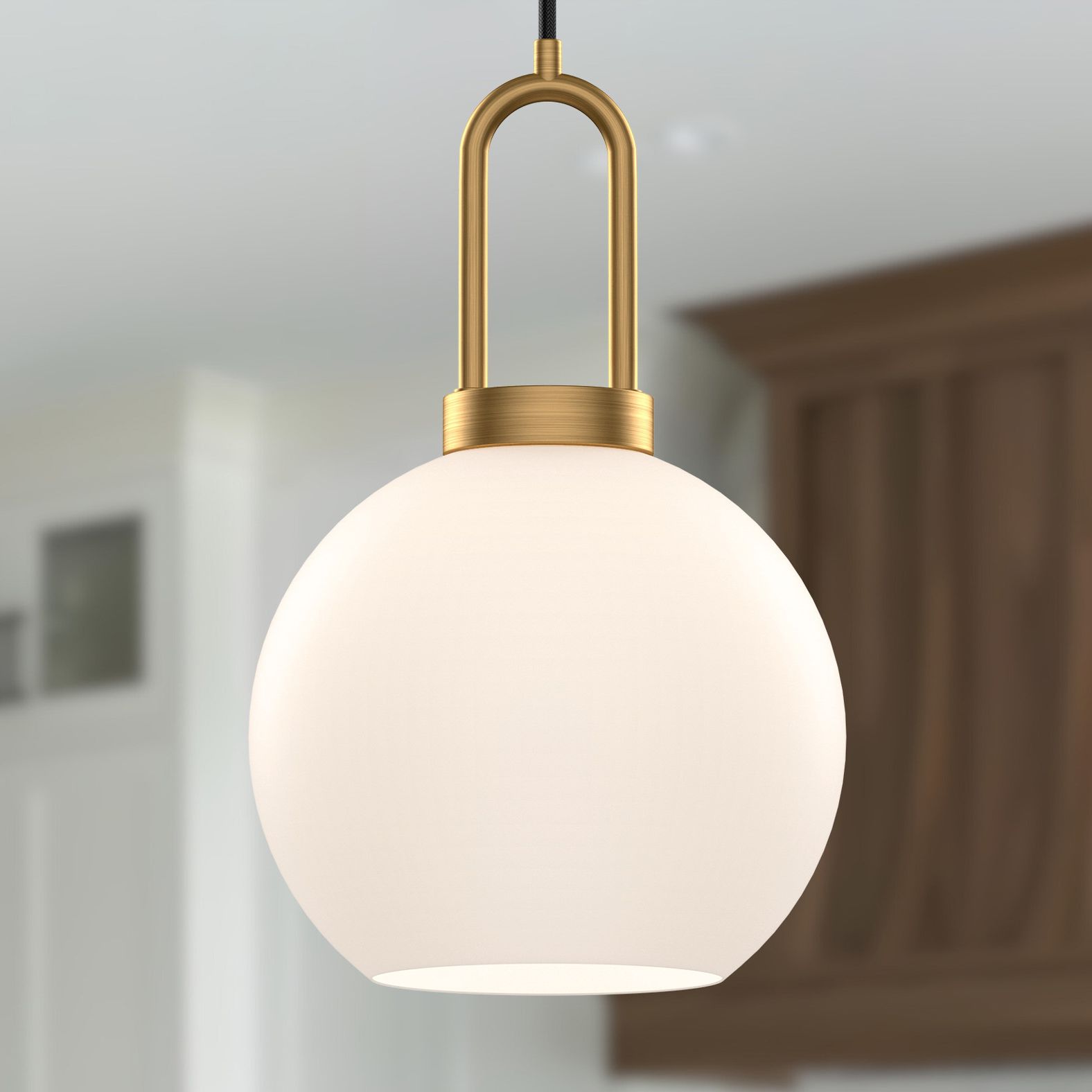 Soji 8" Wide Aged Gold and Opal Glass Mini Pendant