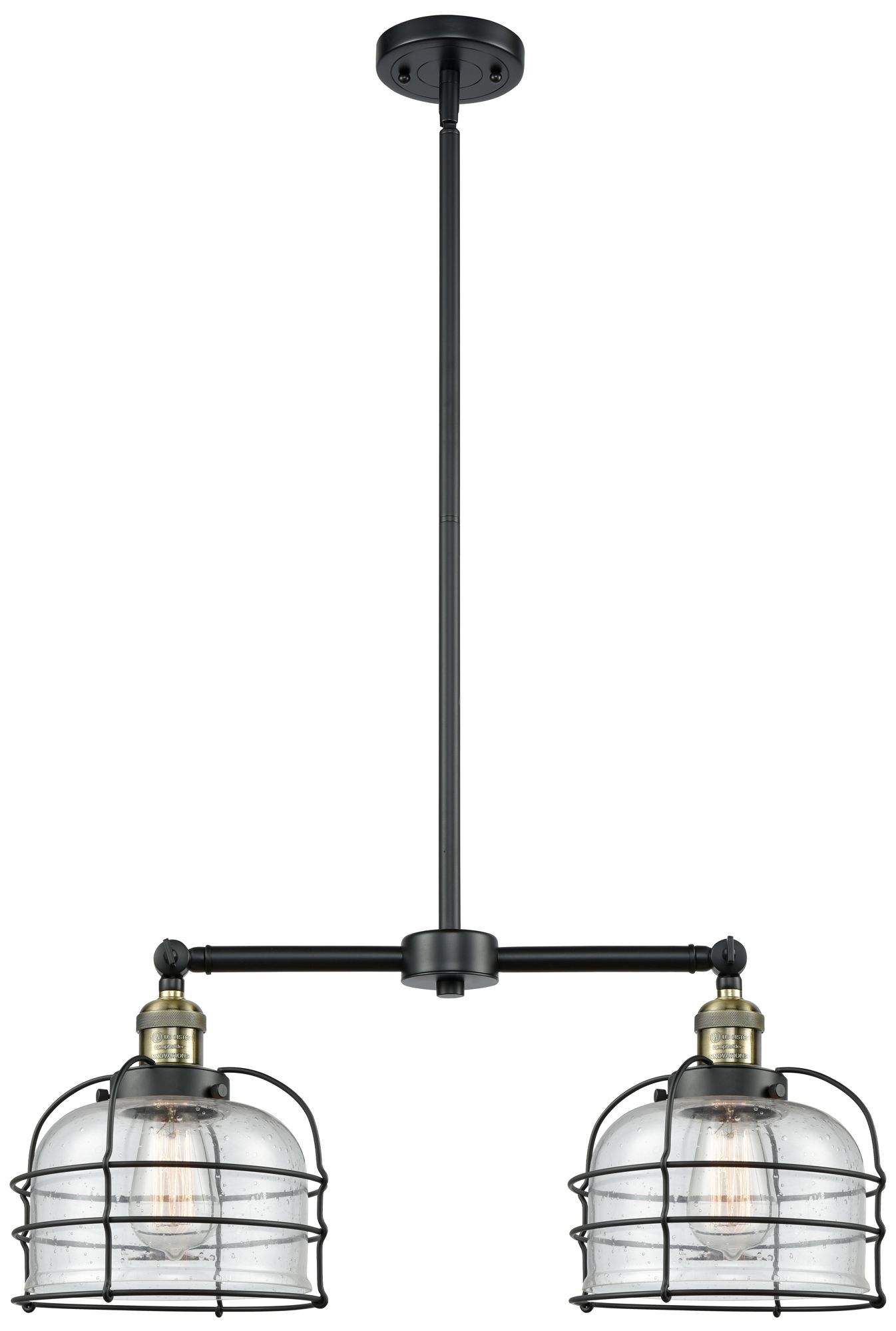 Franklin Bell Cage 24" 2-Light Black Brass Island Light w/ Seedy Shade