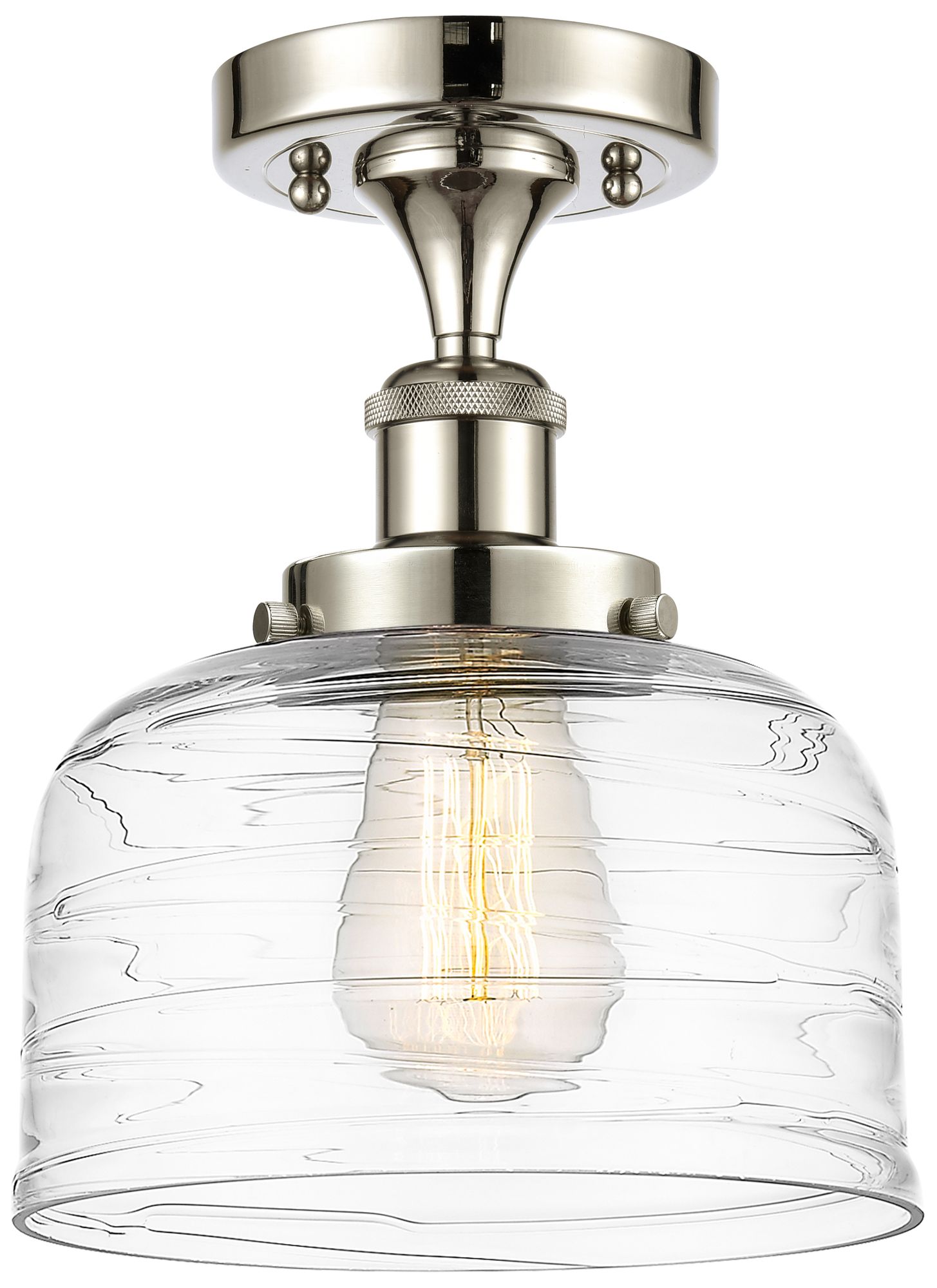 Ballston Urban Bell 8" Semi-Flush - Polished Nickel - Clear Deco Swir