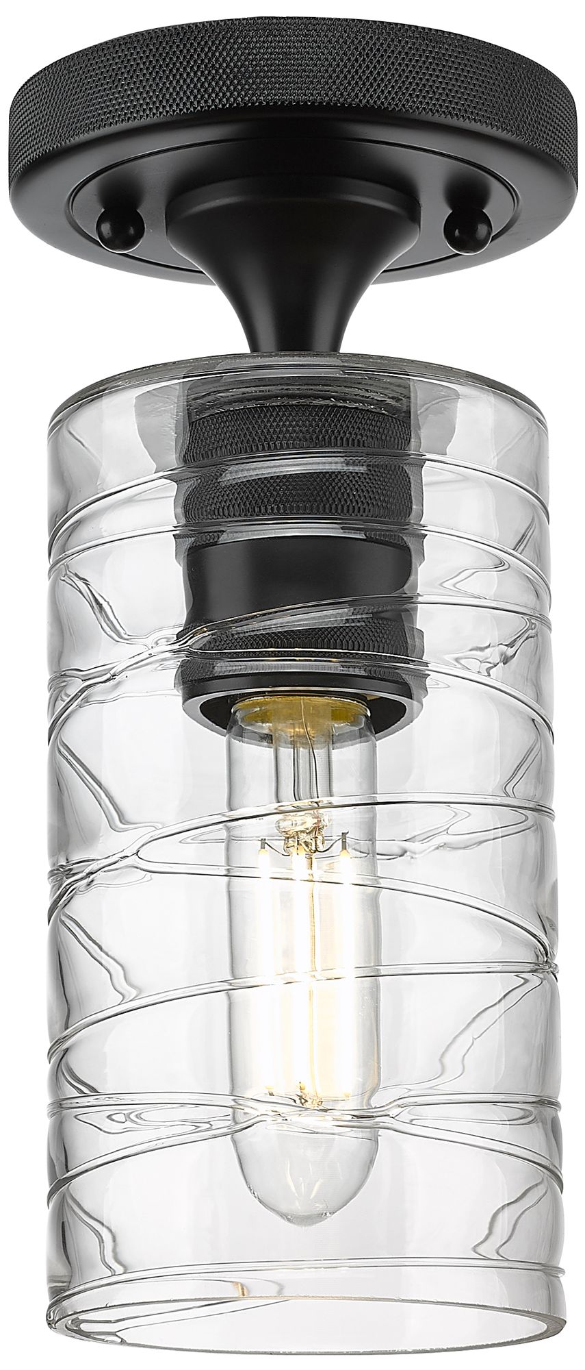 Crown Point 4" Wide Matte Black Flush Mount with Deco Swirl Shade