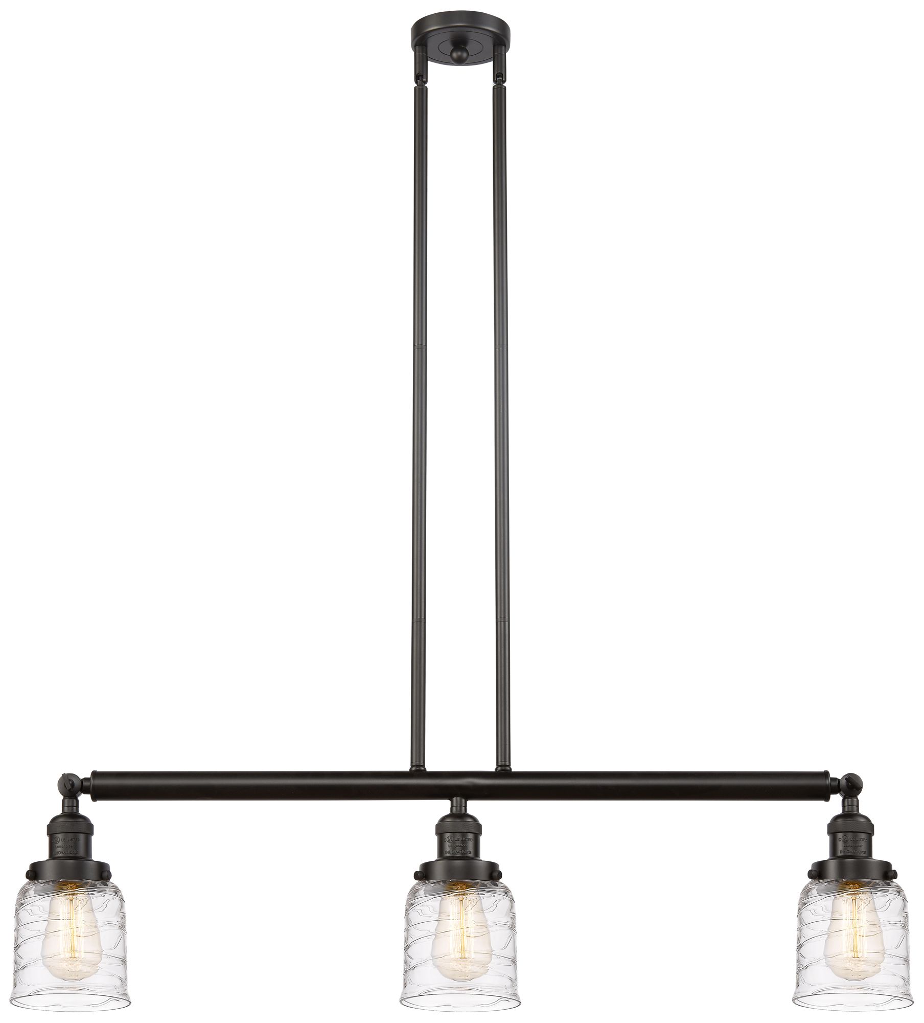 Bell 3 Light 38" LED Island Light - Oil Rubbed Bronze - Deco Swirl Sh