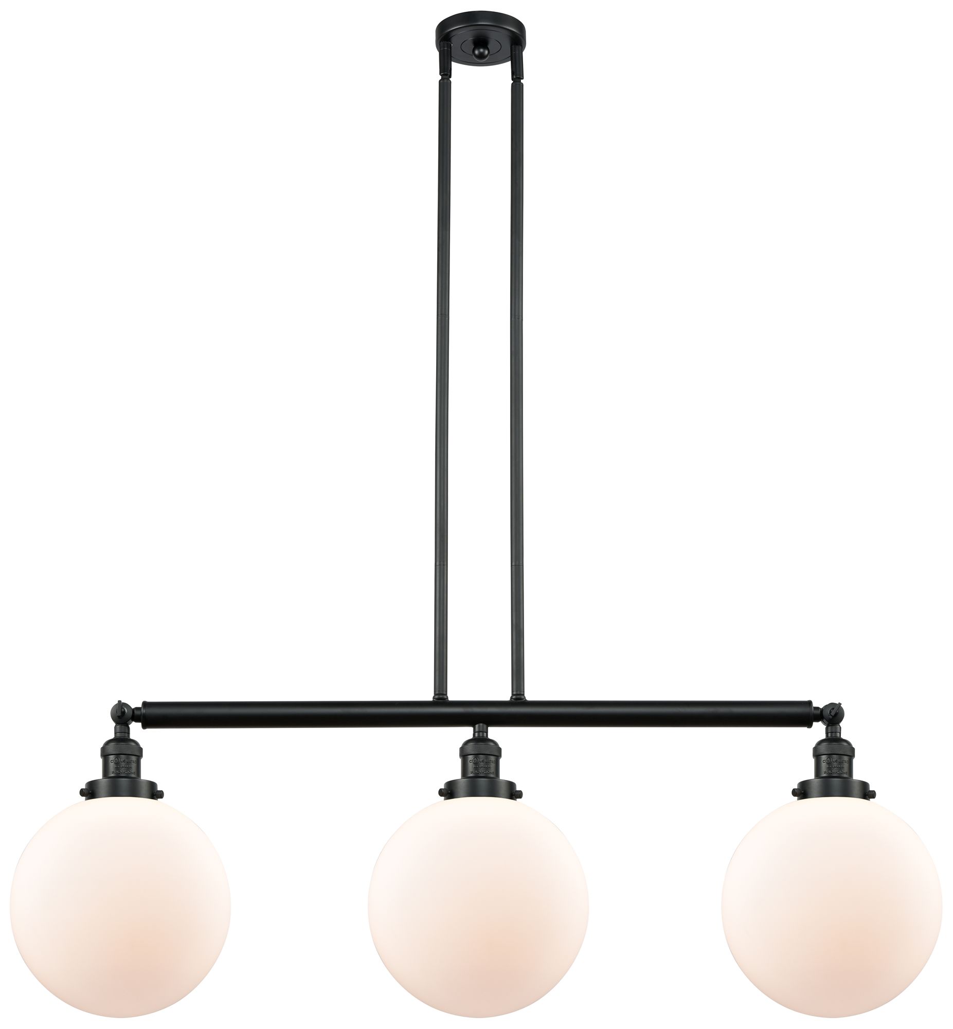 Beacon 42" Wide 3 Light Matte Black Stem Hung Island Light w/ White Sh