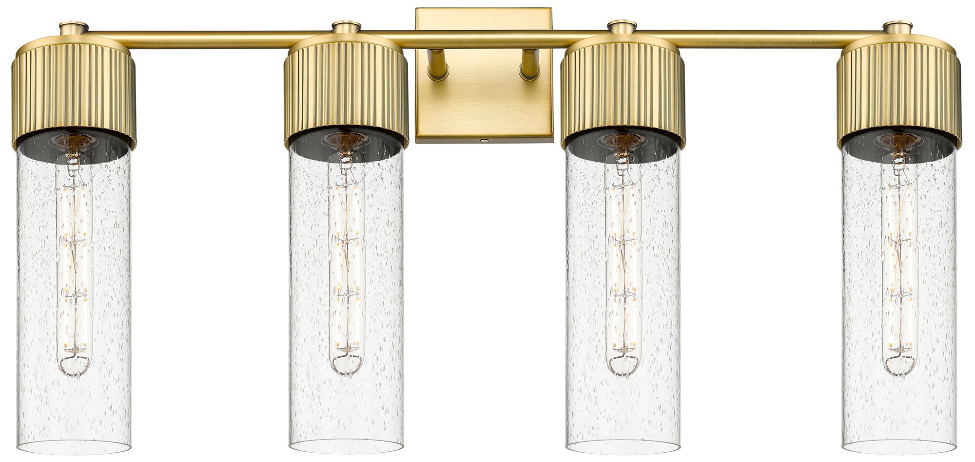 Bolivar 31" Wide 4 Light Brushed Brass Bath Light With Seedy Glass Sha
