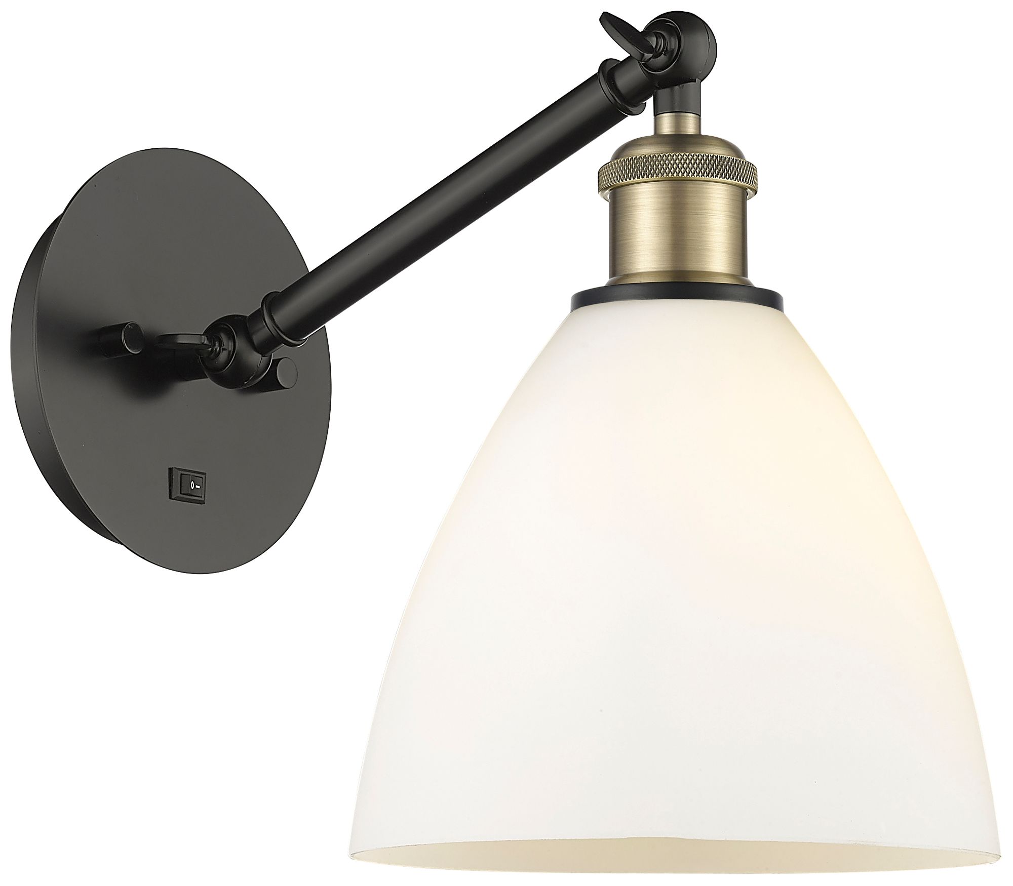 Ballston Bristol Glass 8" LED Sconce - Black Brass Finish - White Shad