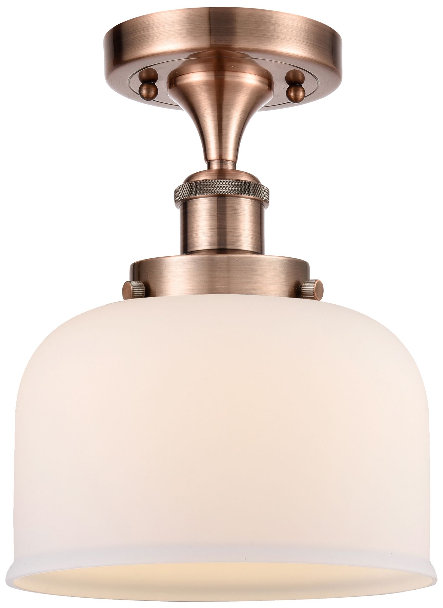 Ballston Urban Bell 8" Semi-Flush Mount - Antique Copper - Matte Whit