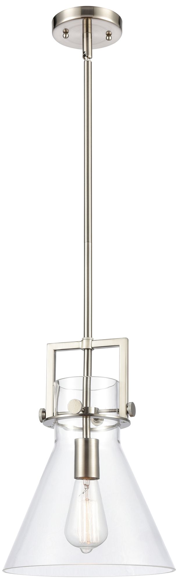 Newton Cone 13.63" Brushed Nickel LED Stem Hung Mini Pendant w/ Clear