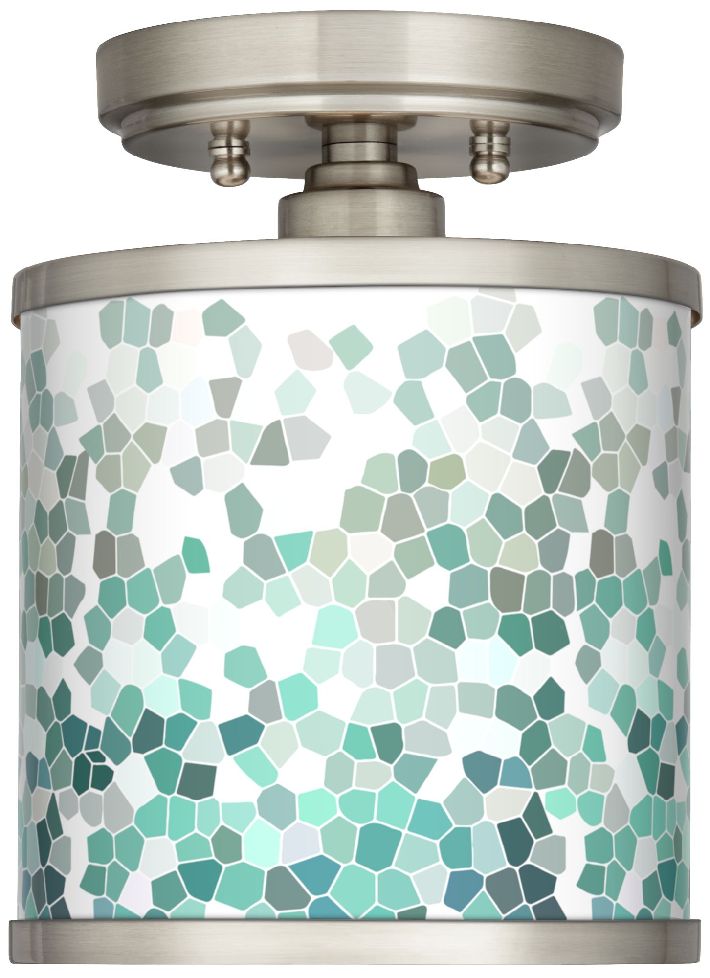 Aqua Mosaic Cyprus 7" Wide Brushed Nickel Ceiling Light