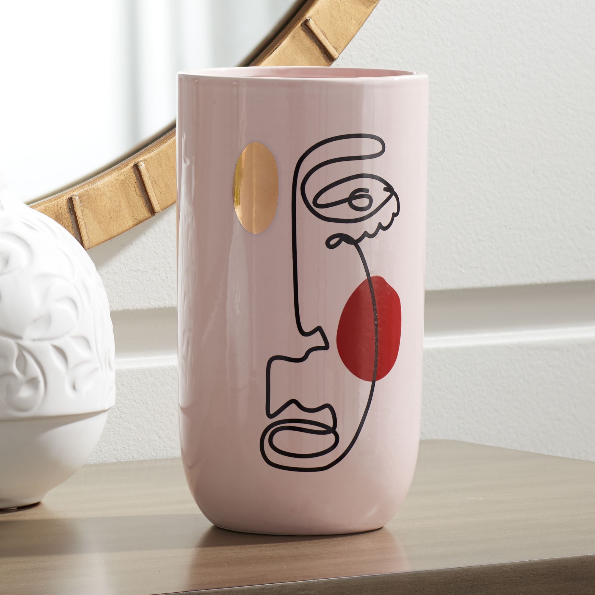 Modern Face 8 3/4"H Pink and Black Dolomite Decorative Vase