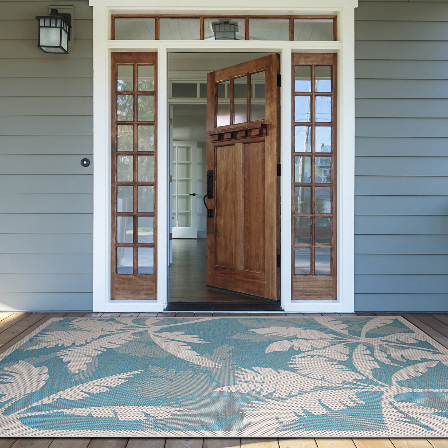 Monaco Coastal Floral 3'9"x5'5" Ivory Turquoise Outdoor R