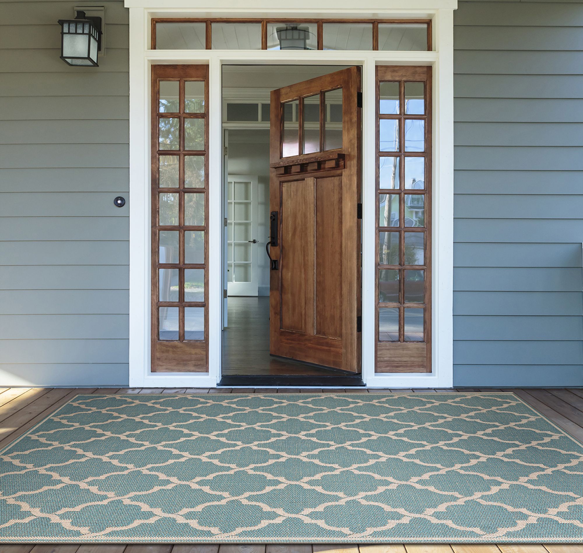Monaco Ocean Port 5'3"x7'6" Turquoise and Sand Outdoor Ru