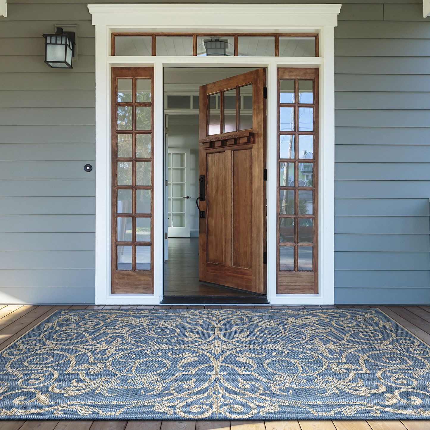 Monaco Summer Quay 7'6"x10'9" Ivory and Sapphire Outdoor