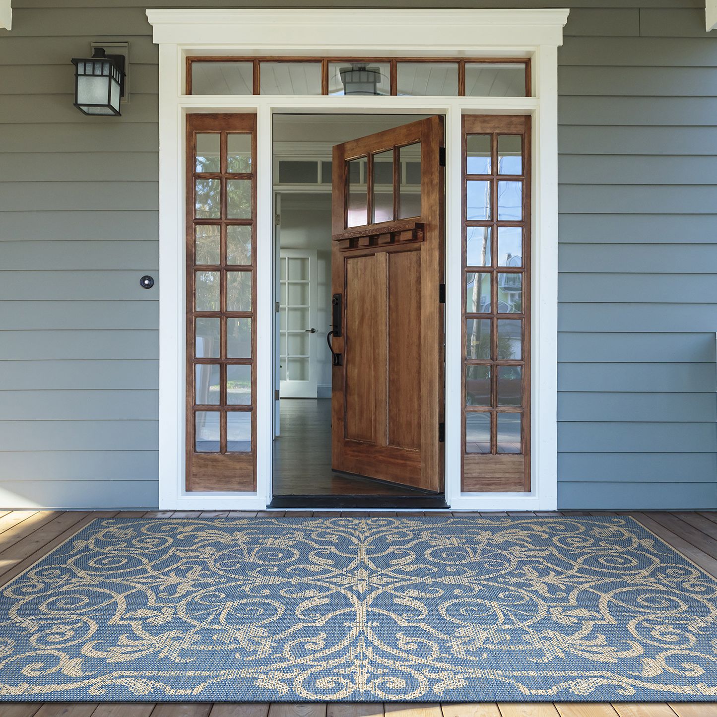 Monaco Summer Quay 3'9"x5'5" Ivory and Sapphire Outdoor R