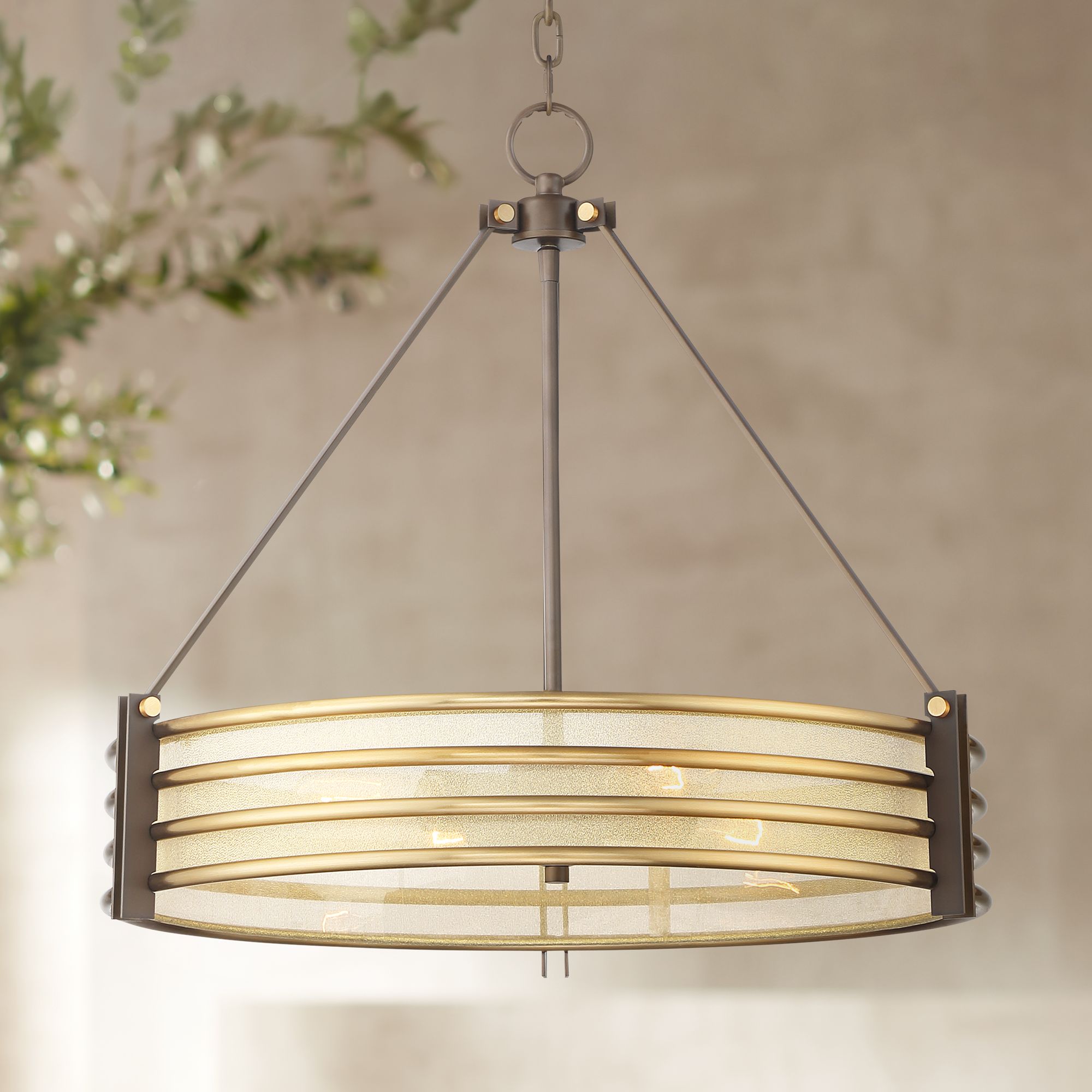 Dell 23 1/2 " Wide Warm Gold and Bronze 4-Light Drum Pendant