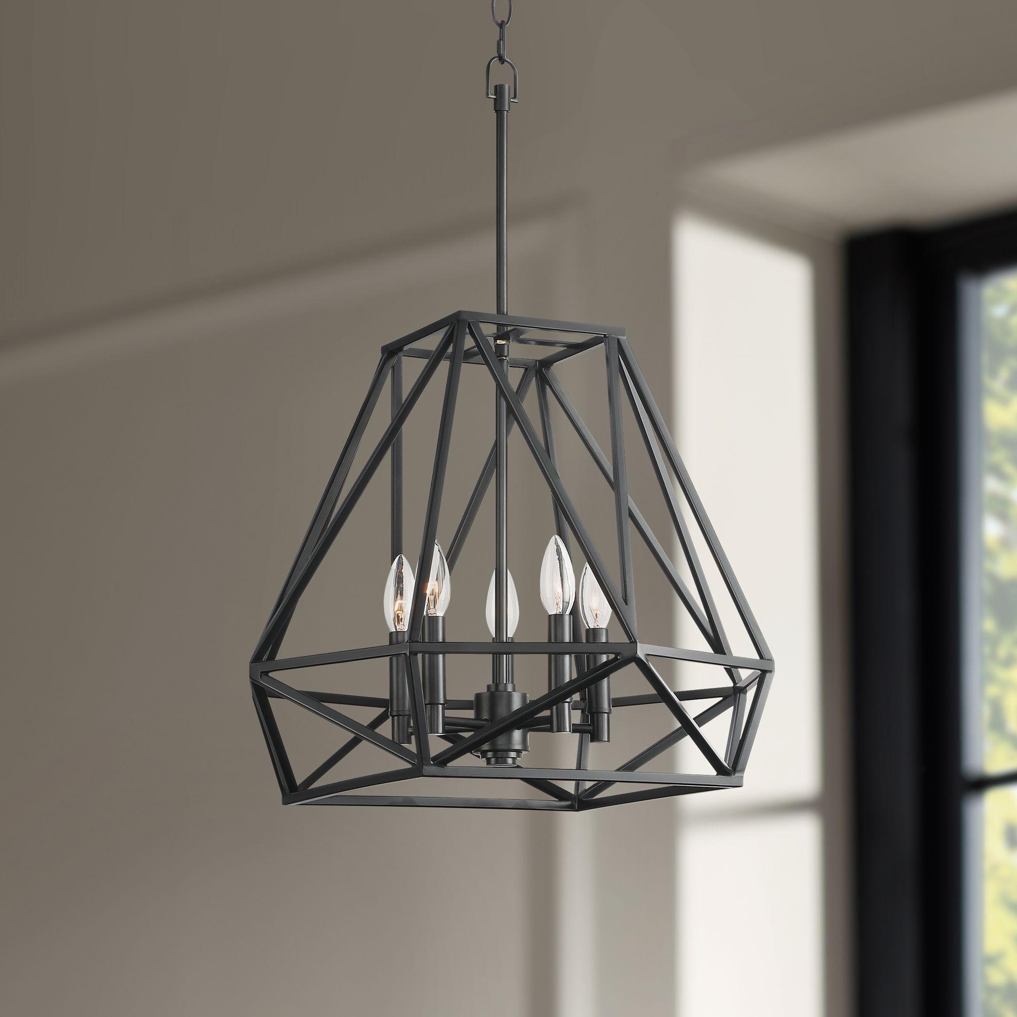 Franklin Iron Hawking 19 1/2" Semi-Gloss Black Open Geometric Pendant