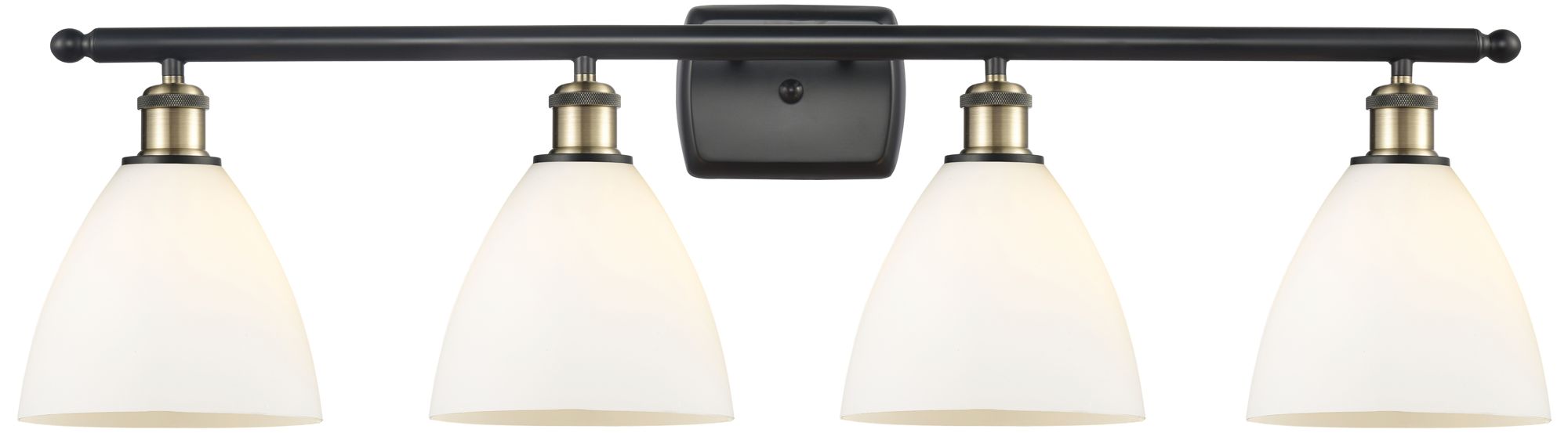Bristol Glass 4 Light 38" LED Bath Light - Black Brass - White Shade