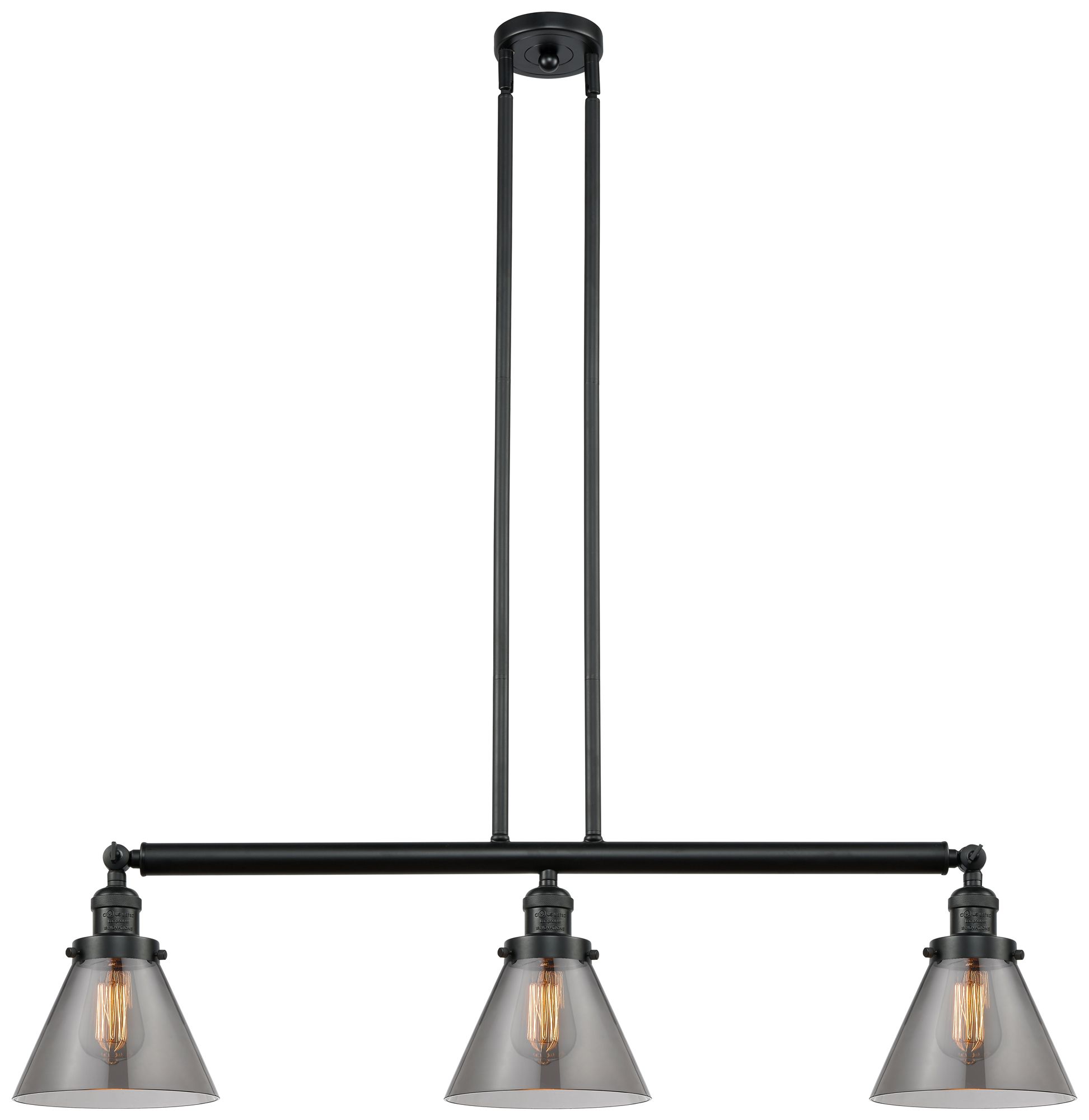 Cone 40.25"W 3 Light Matte Black Stem Hung Island Light w/ Smoke Shade