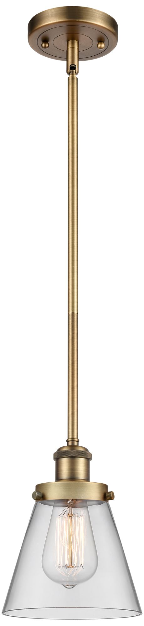 Ballston Urban Cone 6" Brushed Brass Stemmed Mini Pendant w/ Clear Sha