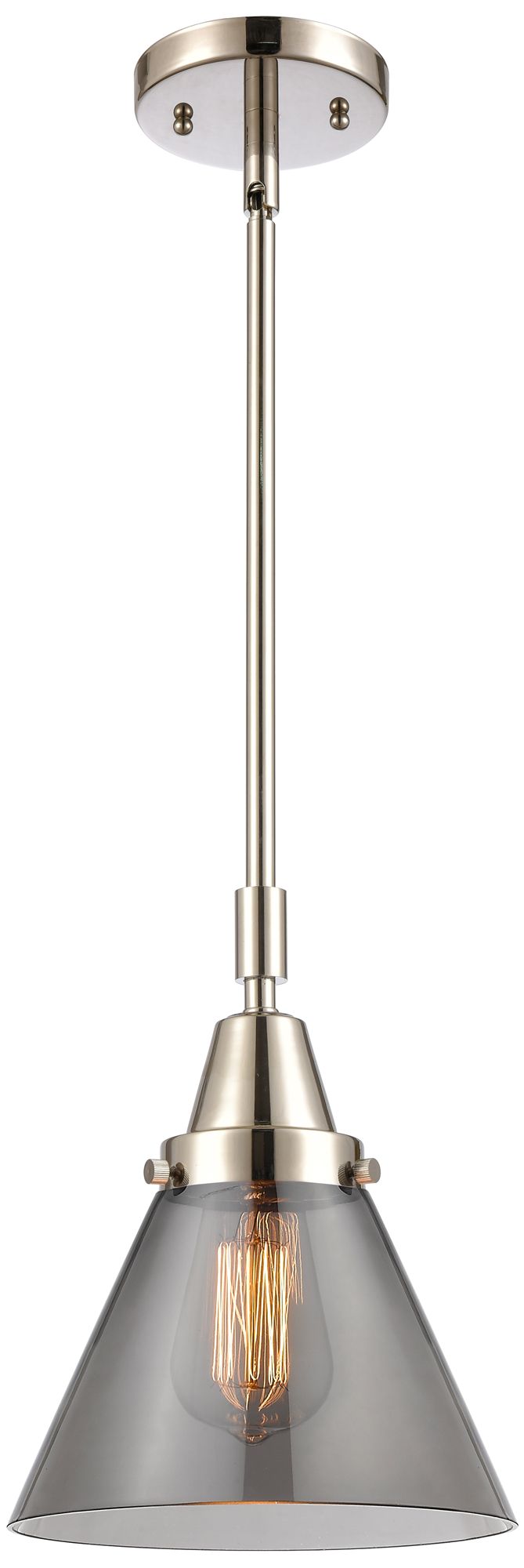 Caden Cone 8"W Polished Nickel Stem Hung Mini Pendant w/ Plated Smoke