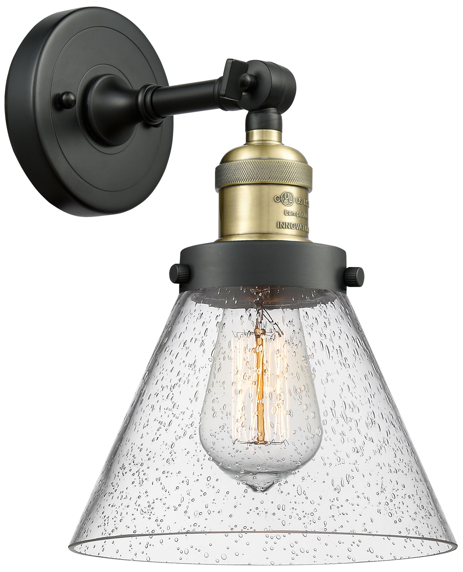 Franklin Restoration Large Cone 8" Black Brass Sconce w/ Seedy Shade