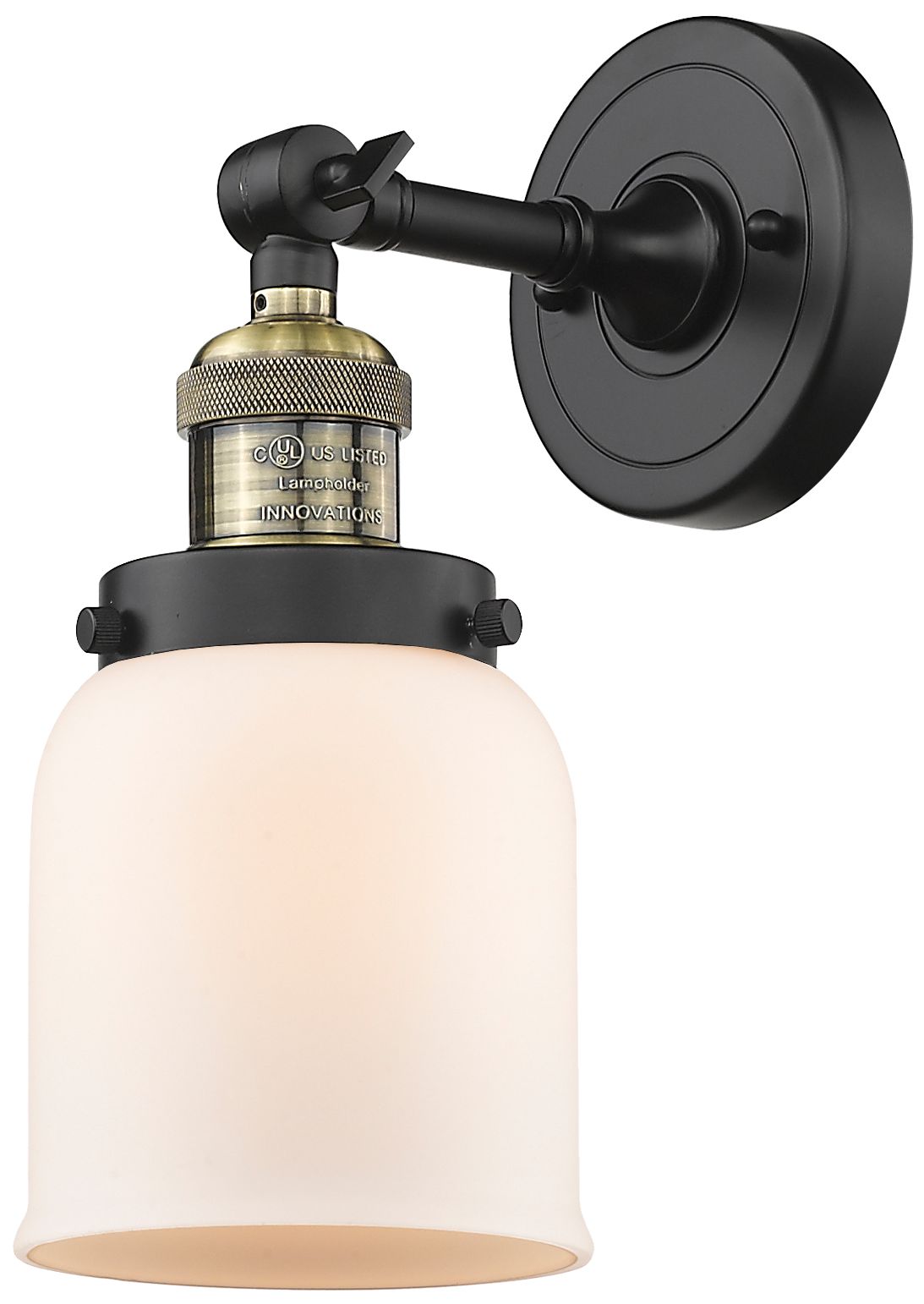 Franklin Restoration Small Bell 5" Black Brass Sconce w/ White Shade
