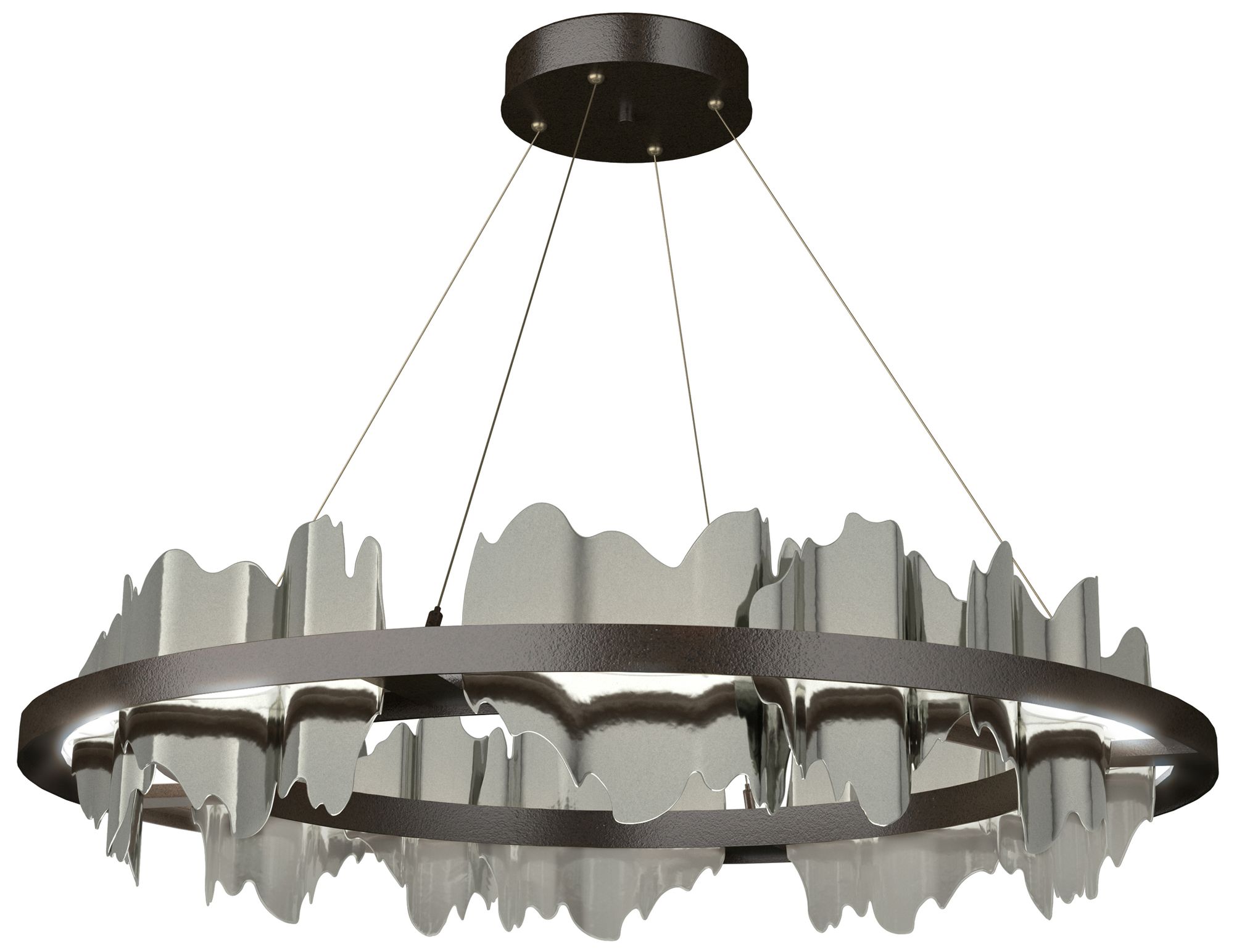 Hildene 38"W Sterling Accented Circular Oiled Bronze Standard LED Pend