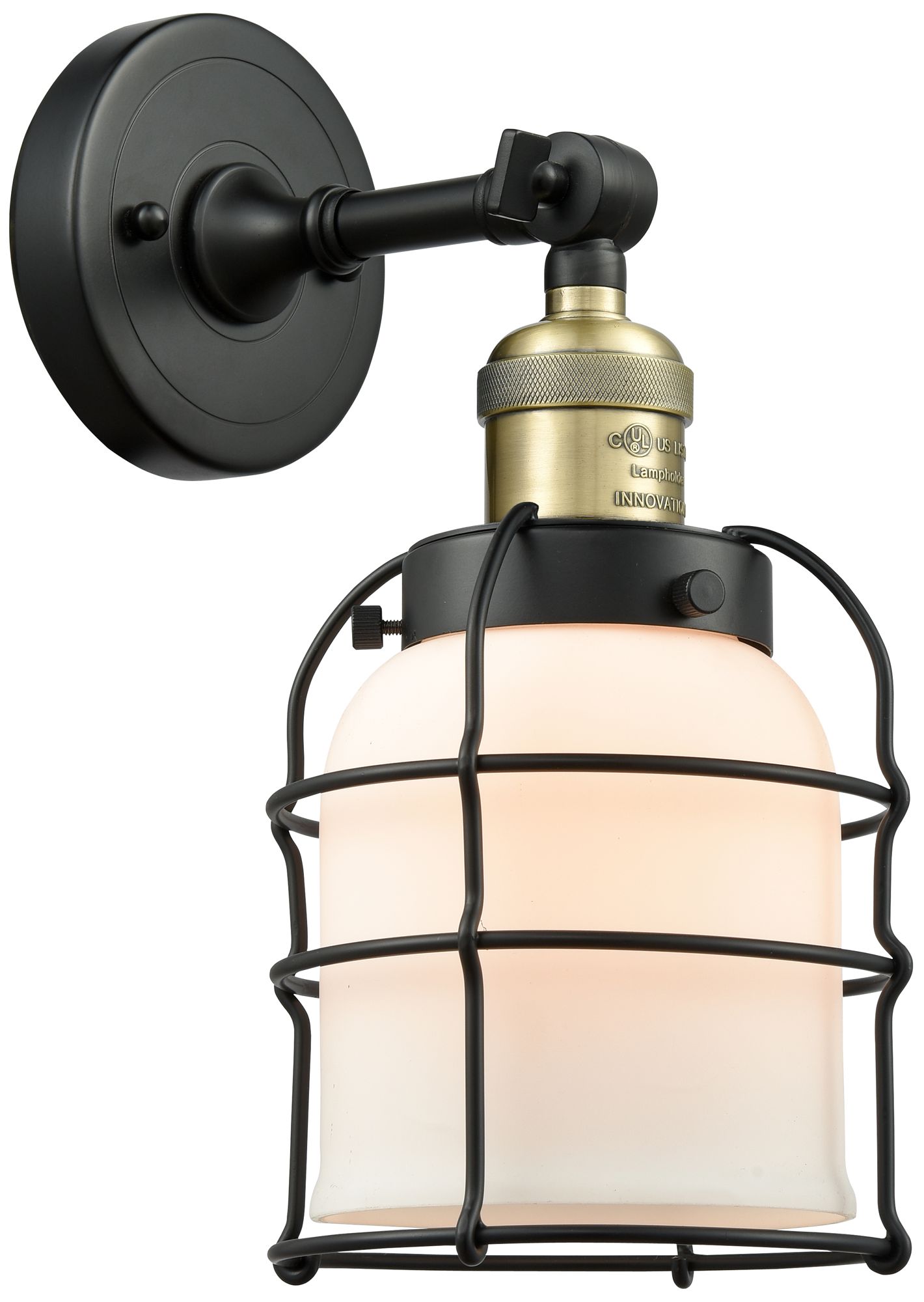 Franklin Restoration Bell Cage 6" Black Antique Brass Sconce w/ White