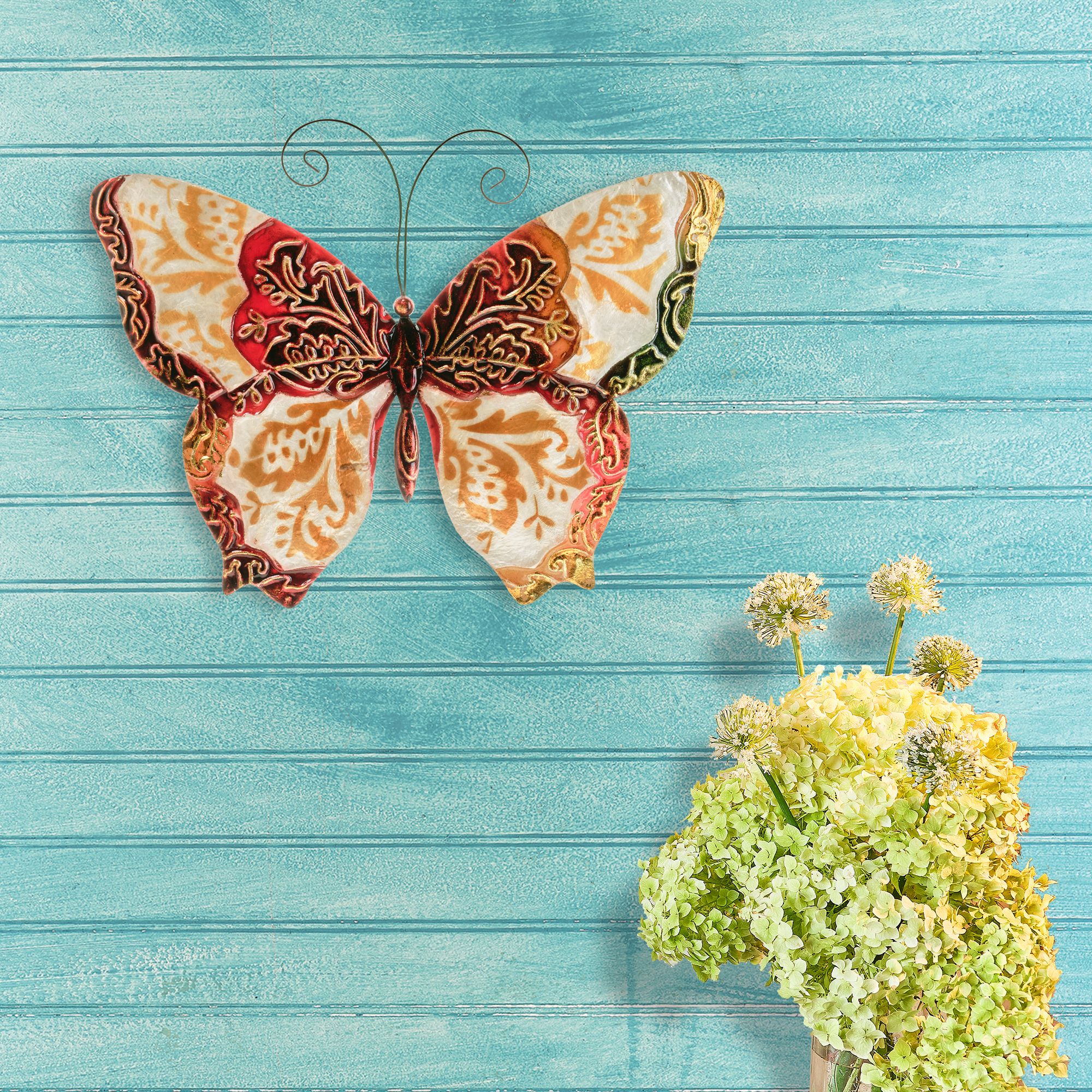 Eangee Butterfly 12"W Pearl and Red Capiz Shell Wall Decor