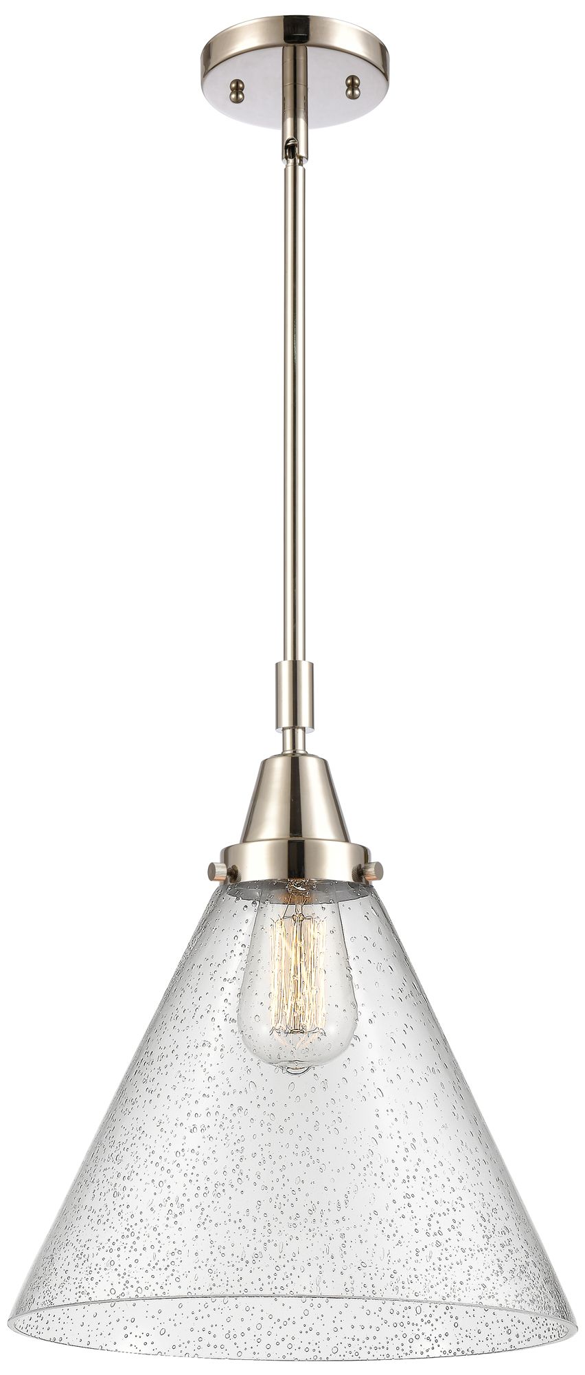 Caden Cone 12" Wide Polished Nickel Stem Hung Mini Pendant w/ Seedy Sh